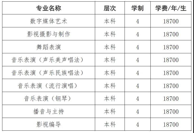 4、在思想政治品德考核合格,参加了招生体检且合格,考生高考文化成绩达到生源所在地省级招生主管部门划定的文化录取控制分数线,校考专业考试成绩合格的前提下,我校数字媒体艺术、播音与主持、音乐表演、舞蹈表演专业,考生在文化分、专业分均上线基础上,以我校专业合格成绩从高到低,择优录取;影视编导、影视摄影与制作专业按照综合成绩从高到低,择优录取。(综合成绩的换算方式(本科):综合成绩=专业折算成绩×70%+文化折算成绩×30%。