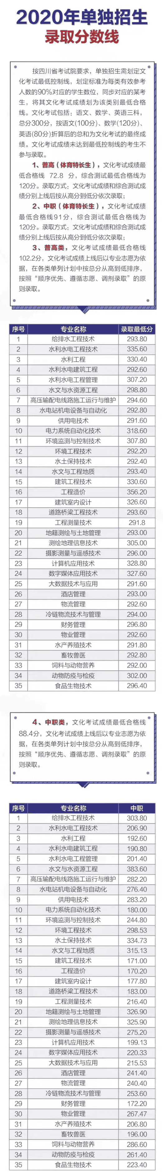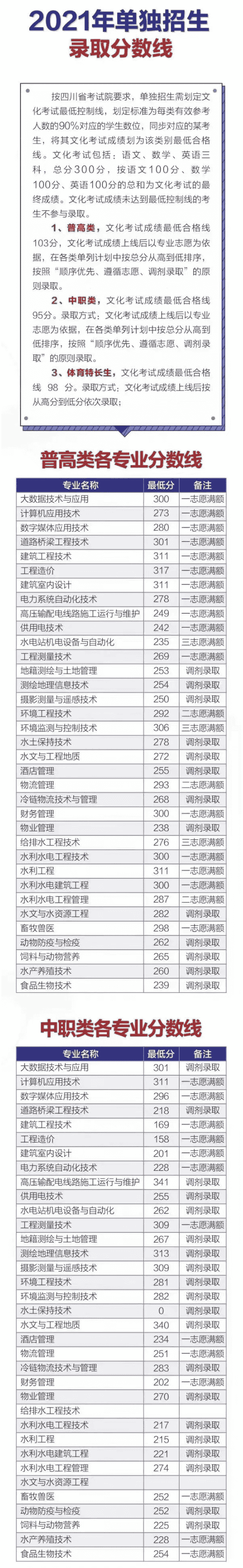 2022四川水利职业技术学院单招历年录取分数线2023参考(含各专业录取分数线)