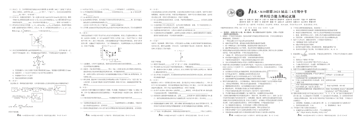 A10联盟2023届高三4月期中考理科综合能力测试试题