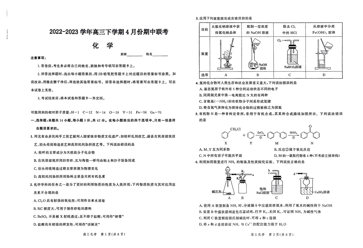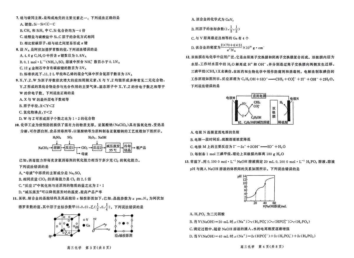 2023河北大数据四高三化学试题