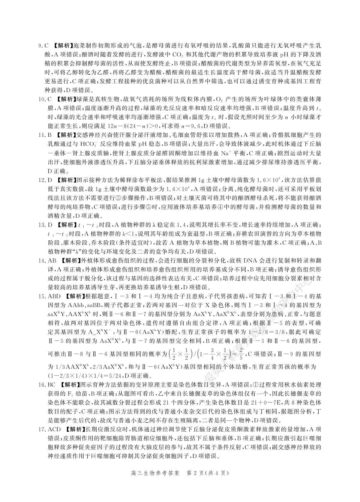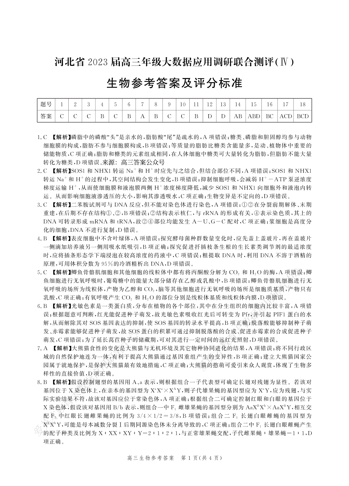 2023河北大数据四高三生物答案
