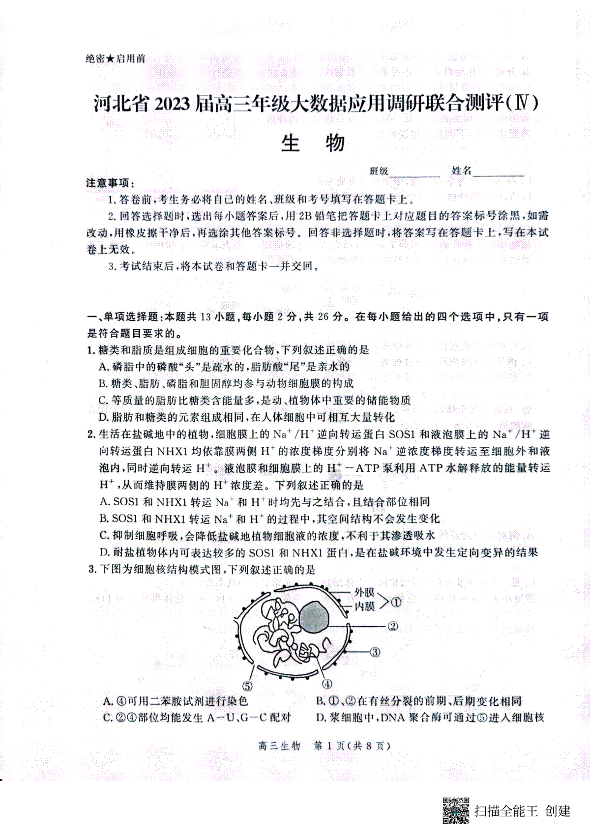 2023河北大数据四高三生物试题是近日广大考及家长较为关心的考试内容,为方便考生考后及时查看2023河北大数据四高三生物试题详情,查漏补缺、弥补不足,本文整理了2023河北大数据四高三生物试题相关信息,提供考生以作参考!