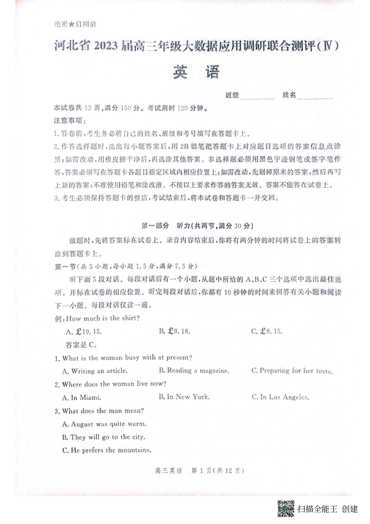 2023河北大数据四高三英语试题是近日广大考及家长较为关心的考试内容,为方便考生考后及时查看2023河北大数据四高三英语试题详情,查漏补缺、弥补不足,本文整理了2023河北大数据四高三英语试题相关信息,提供考生以作参考!