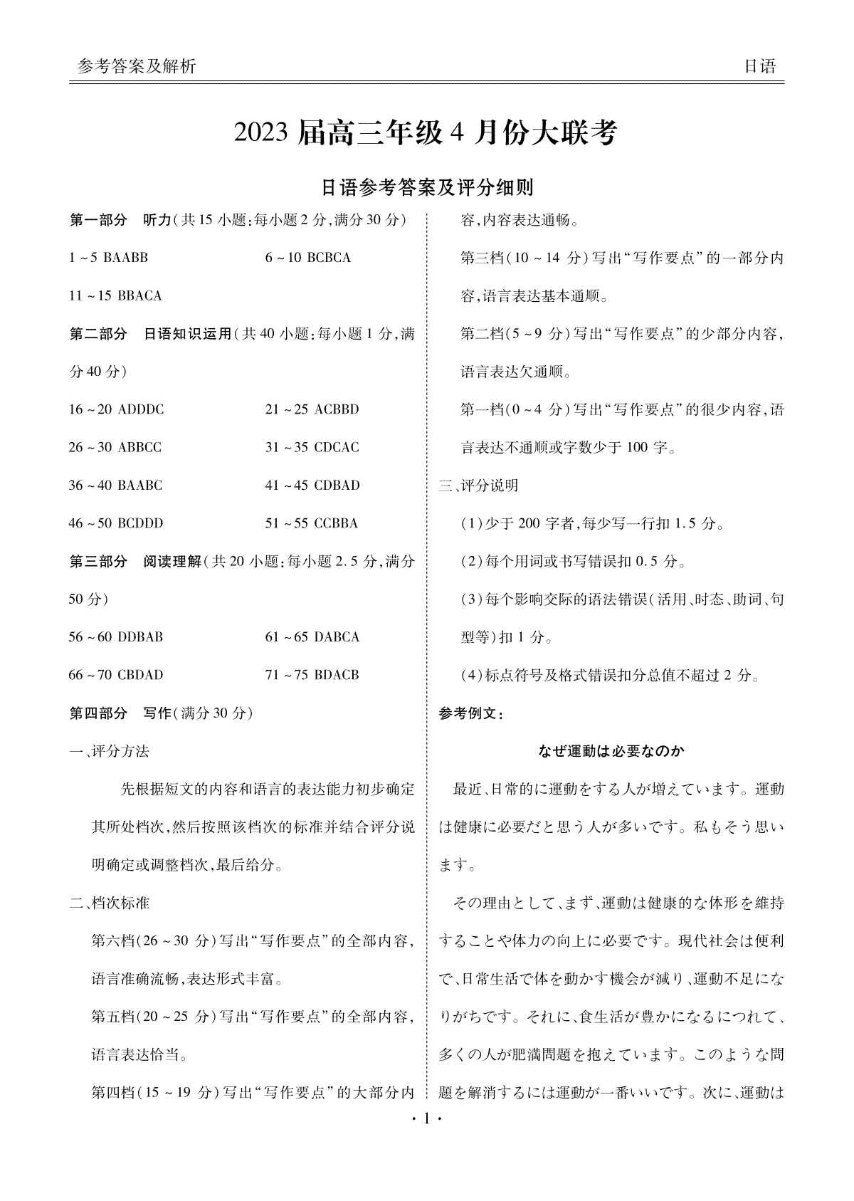 2023届高三年级4月份大联考日语答案是近日广大考及家长较为关心的考试内容,为方便考生考后及时查看2023届高三年级4月份大联考日语答案详情,查漏补缺、弥补不足,本文整理了2023届高三年级4月份大联考日语答案相关信息,提供考生以作参考!