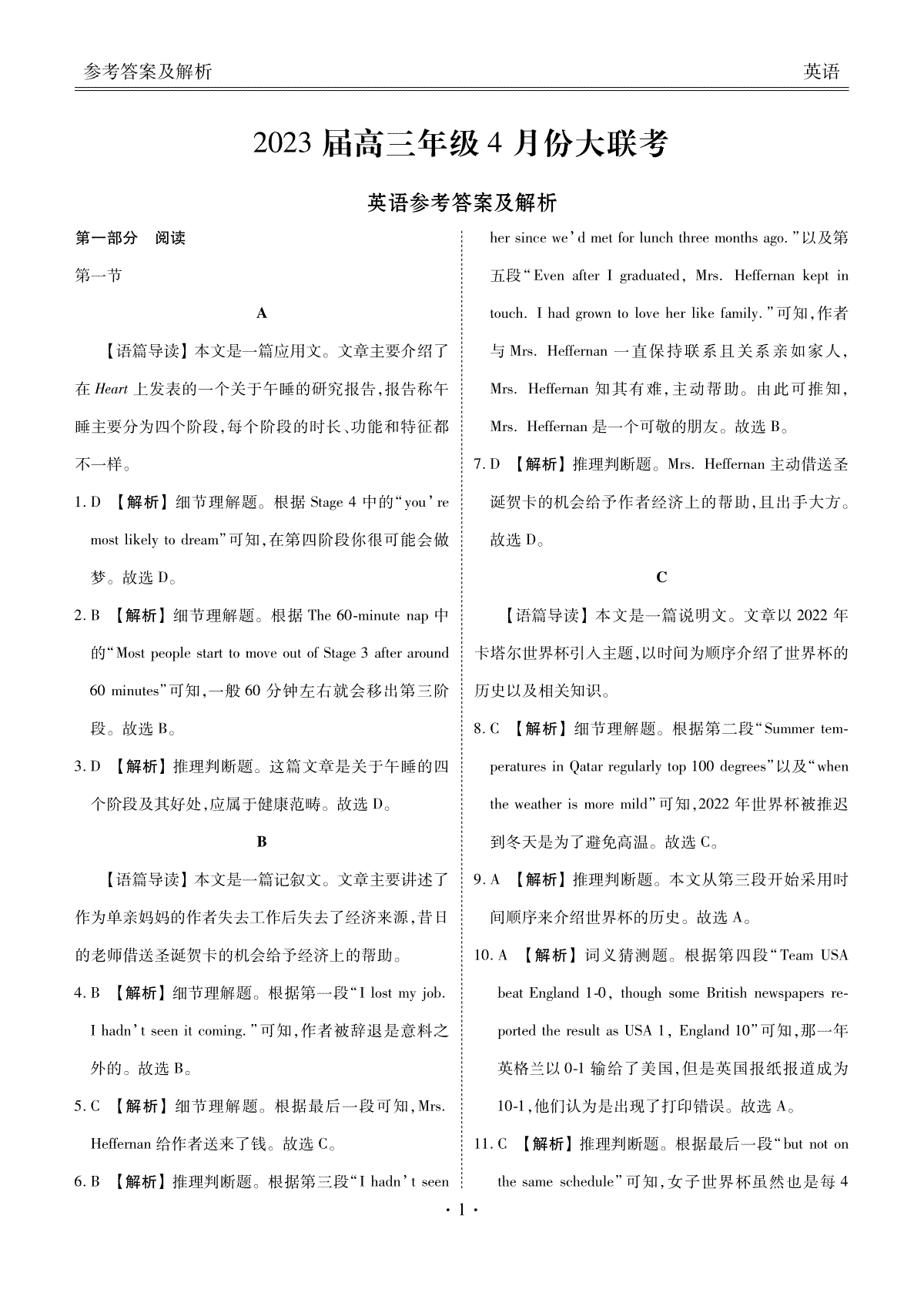 以上内容为2023届高三年级4月份大联考英语答案详情,请关注江南电竞logo 为广大考生提供的其它相关内容。