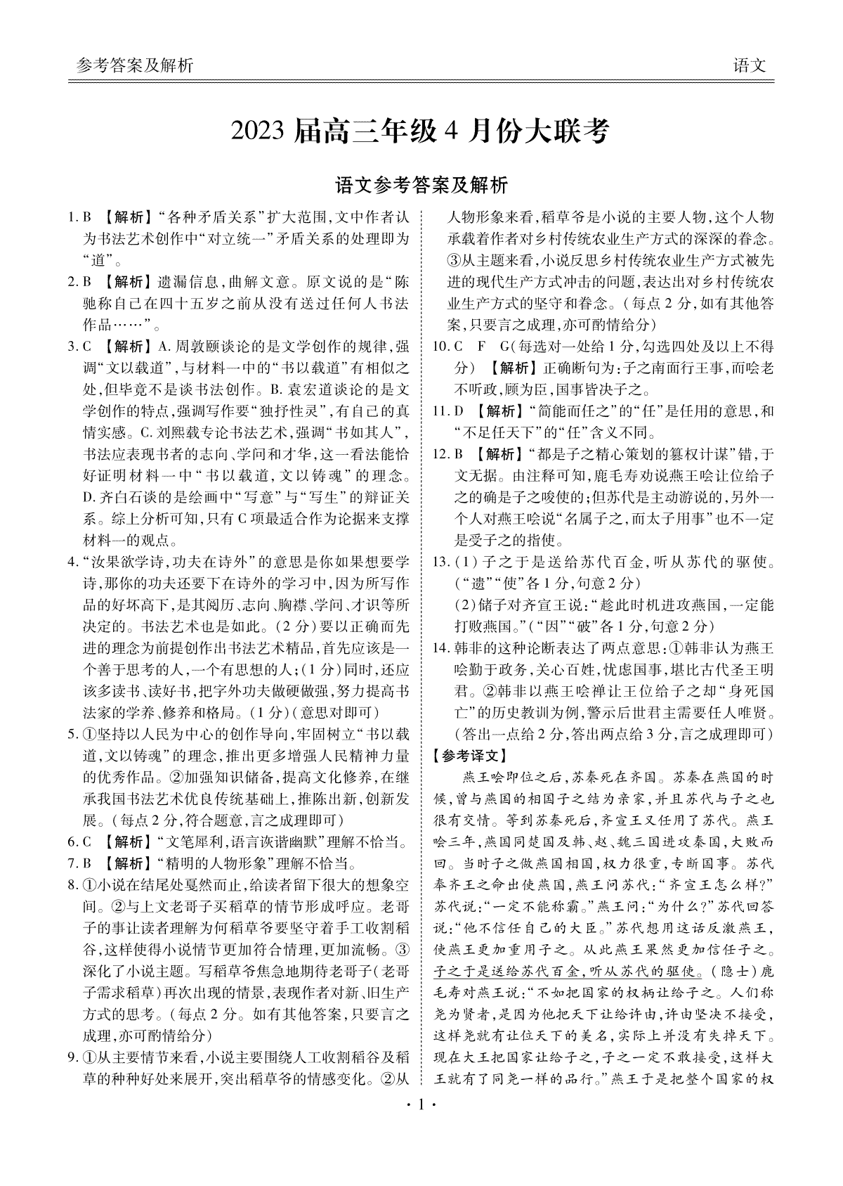 2023届高三年级4月份大联考语文答案是近日广大考及家长较为关心的考试内容,为方便考生考后及时查看2023届高三年级4月份大联考语文答案详情,查漏补缺、弥补不足,本文整理了2023届高三年级4月份大联考语文答案相关信息,提供考生以作参考!