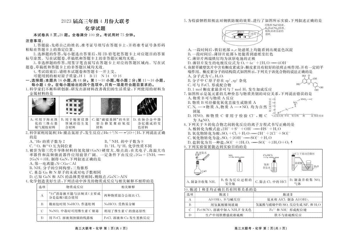 以上内容为2023届高三年级4月份大联考化学试题详情,请关注江南电竞logo 为广大考生提供的其它相关内容。