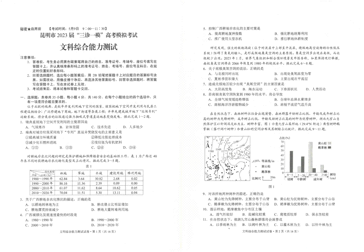 2023昆明市第二次市统考文综试卷