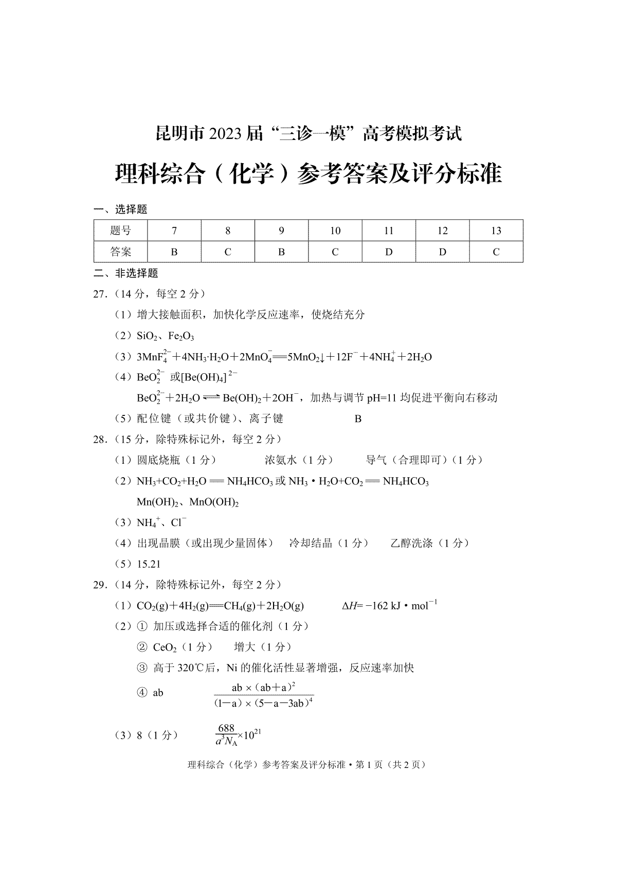 以上内容为2023昆明市第二次市统考理综答案详情,请关注江南电竞logo 为广大考生提供的其它相关内容。