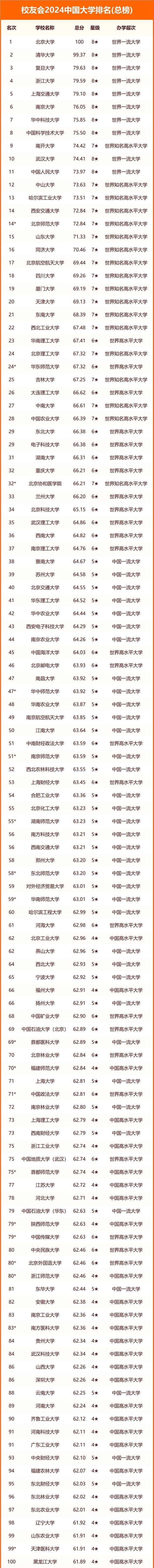 2024全国大学排行榜最新 国内高校排名完整版【校友会】