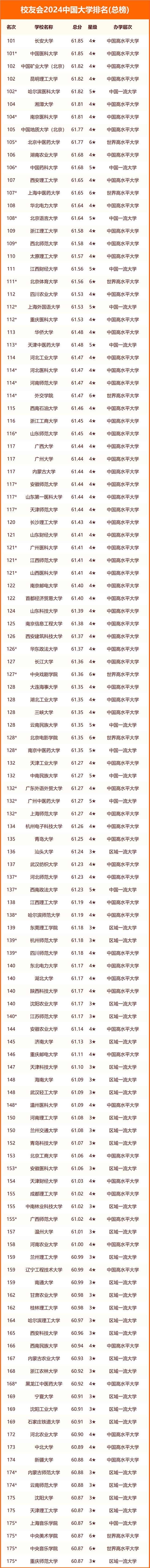 校友会2024中国大学排名如下:排名第一的学校是北京大学;排名第二的大学是清华大学。