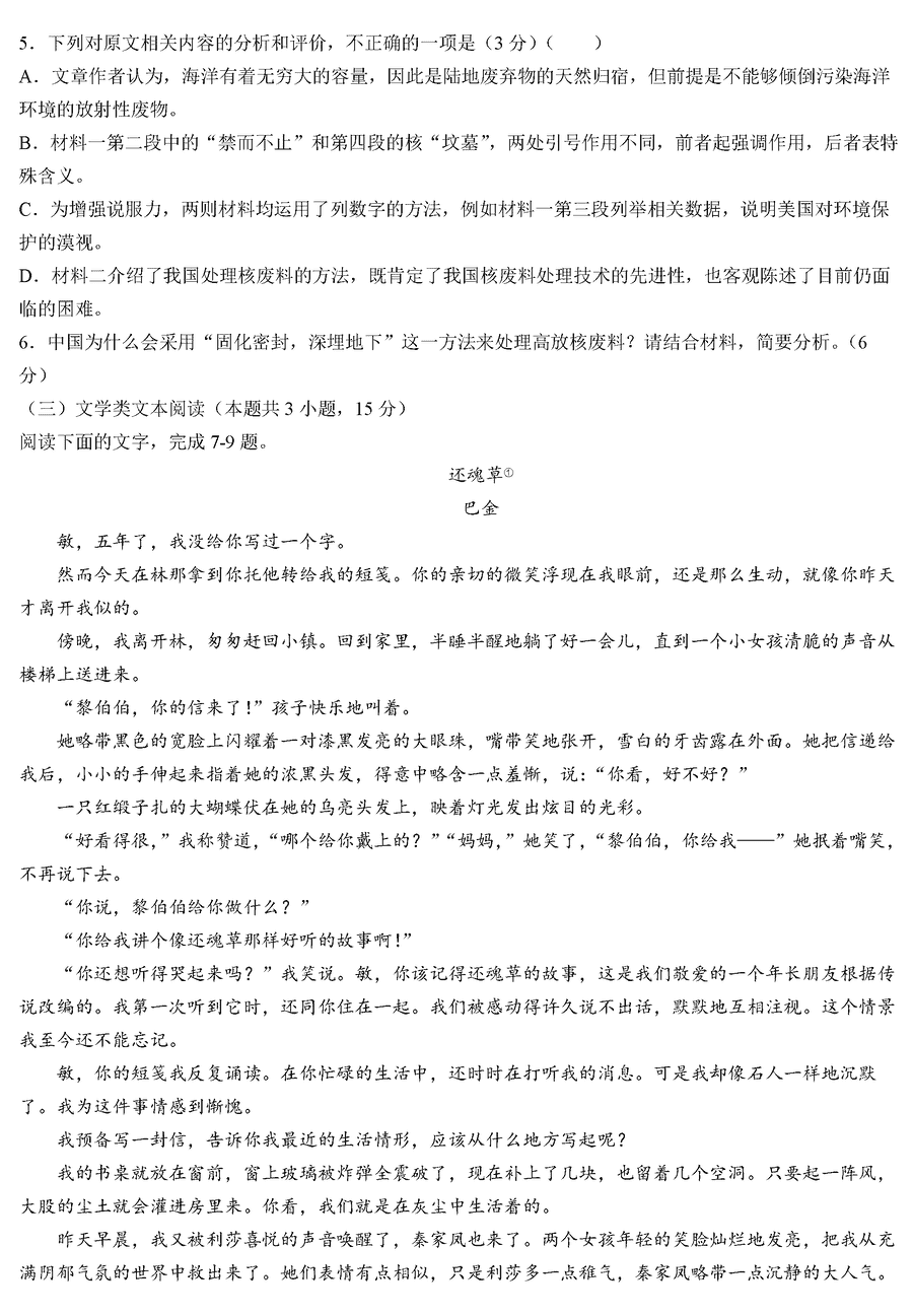 语文试题及答案解析