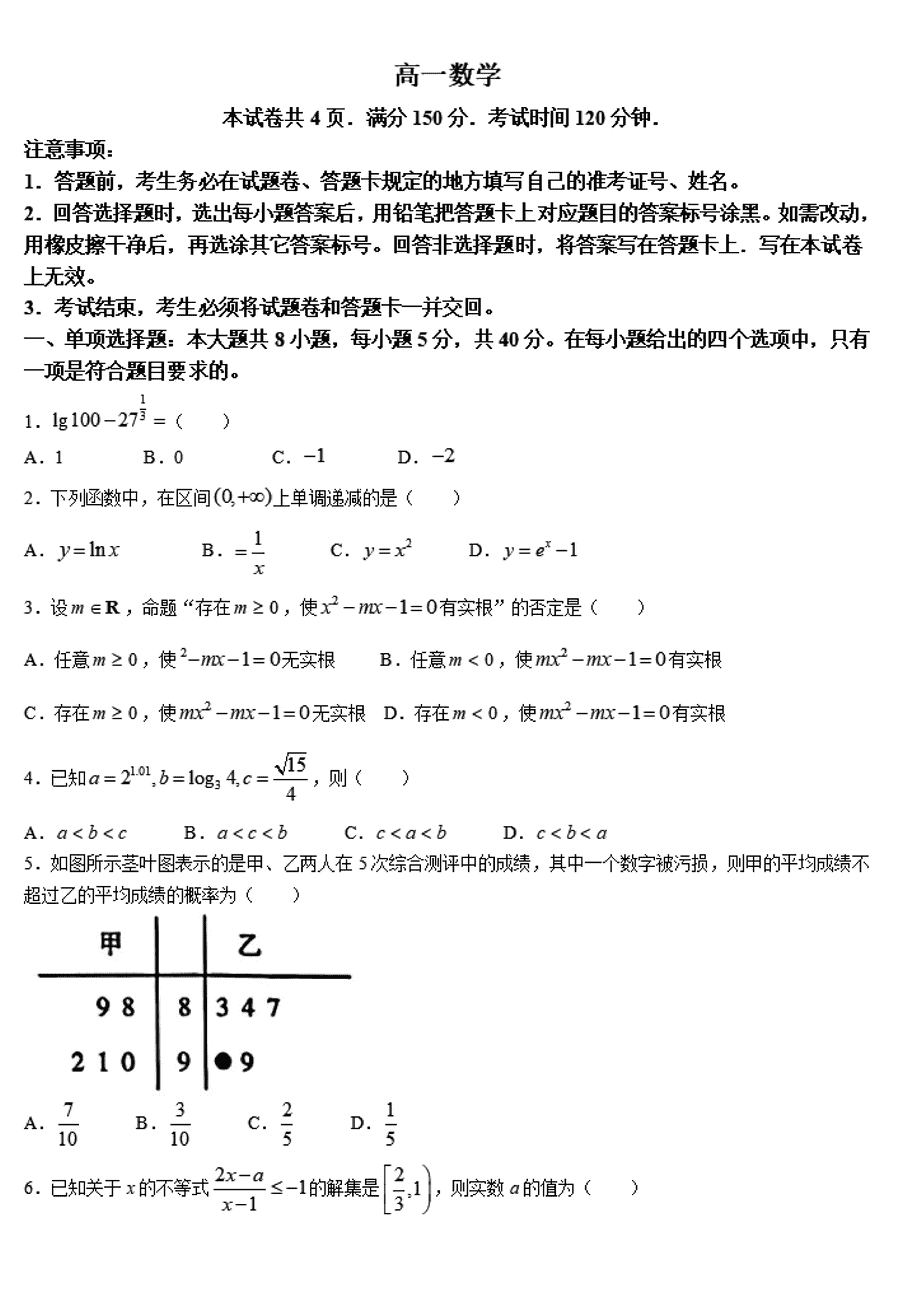 山东潍坊2023-2024学年高一上学期期末数学考试已于近日开考,为方便考生考后及时查看考试情况,查漏补缺、弥补不足,本文整理了山东潍坊2023-2024学年高一上学期期末数学试题答案解析相关信息!