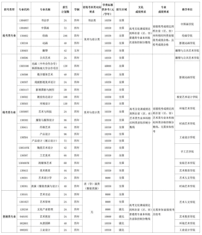 2024湖北美术学院艺术类校考招生计划 各专业招多少人