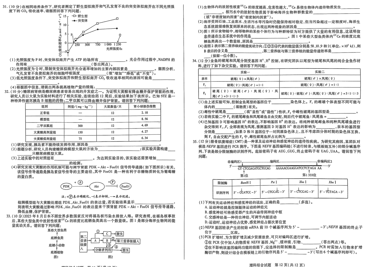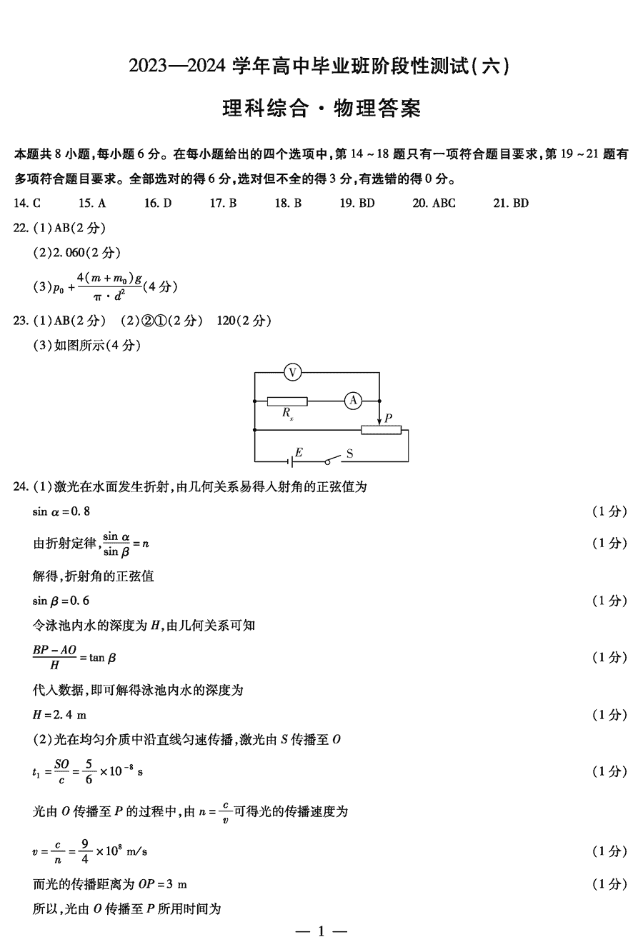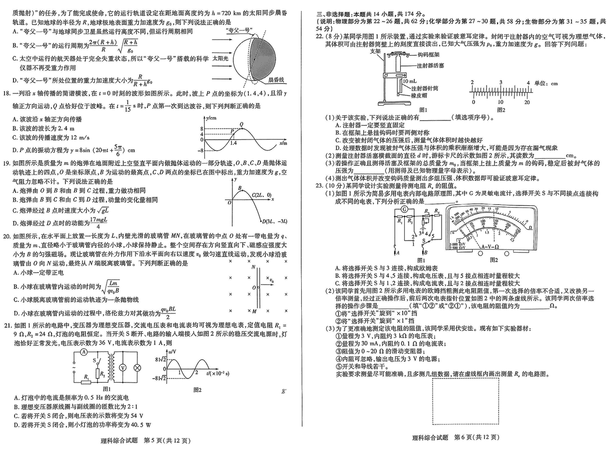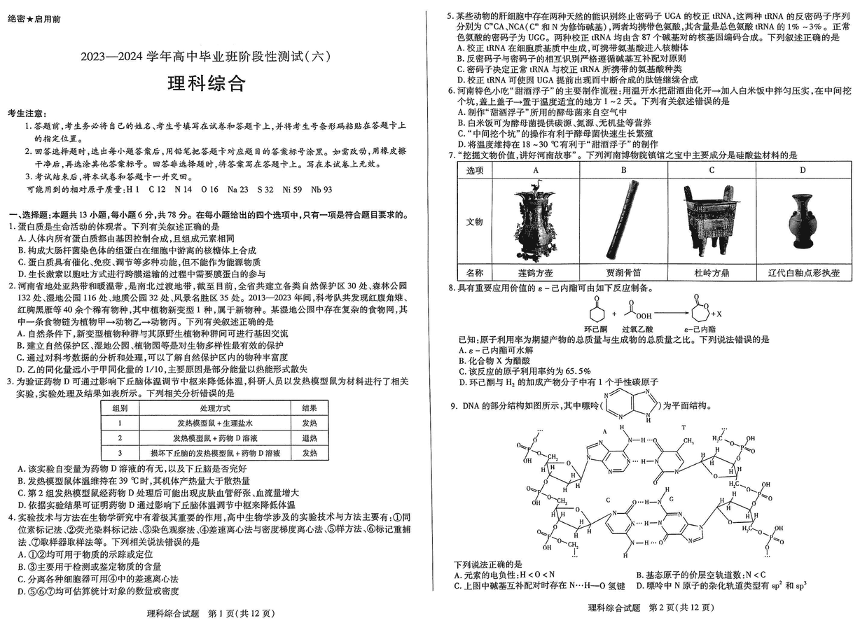 河南天一大联考2024届高三阶段性测试(六)理综试题及答案