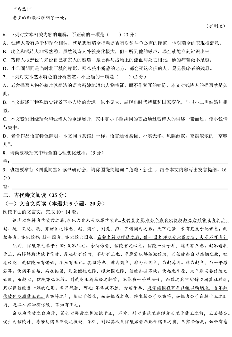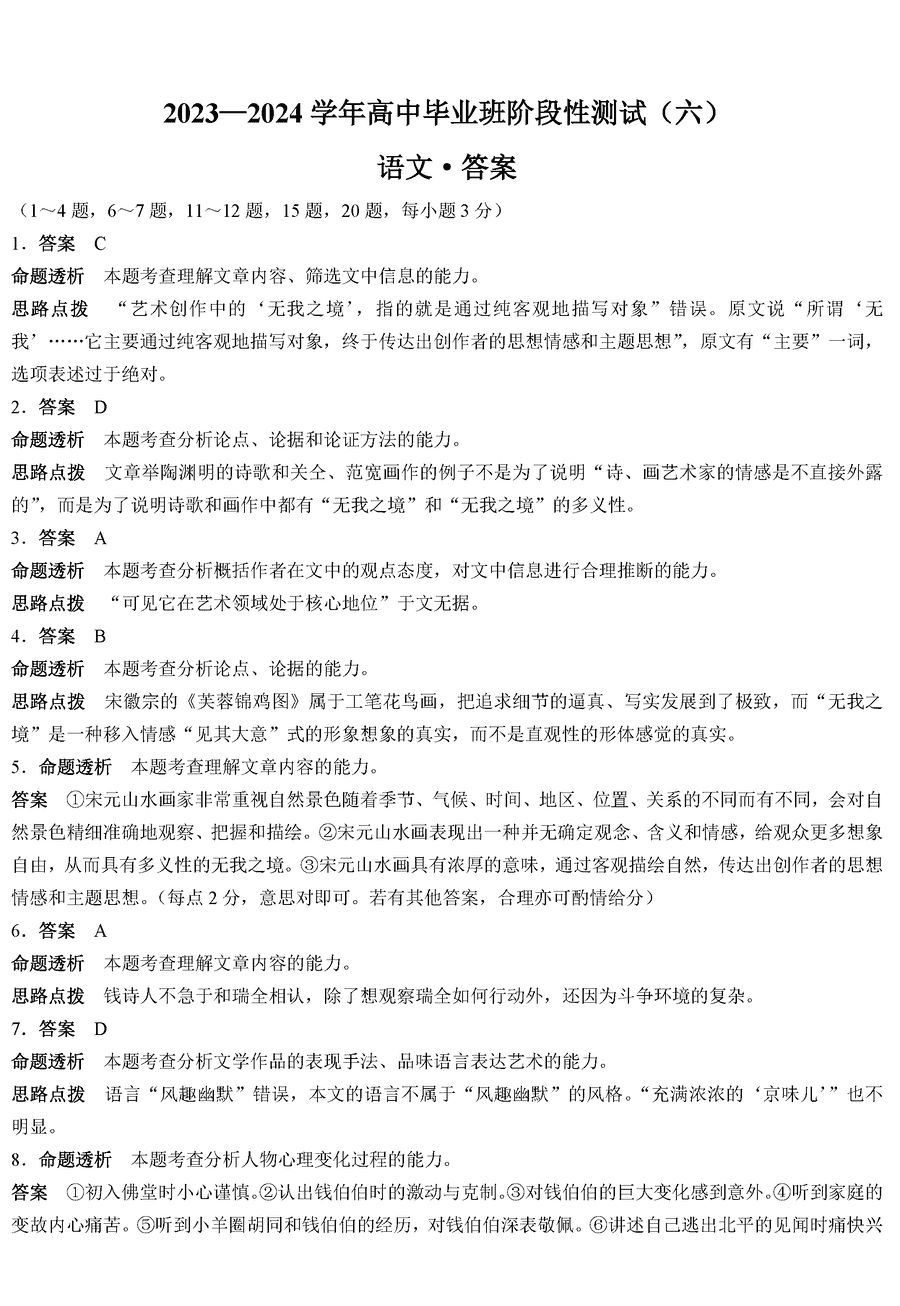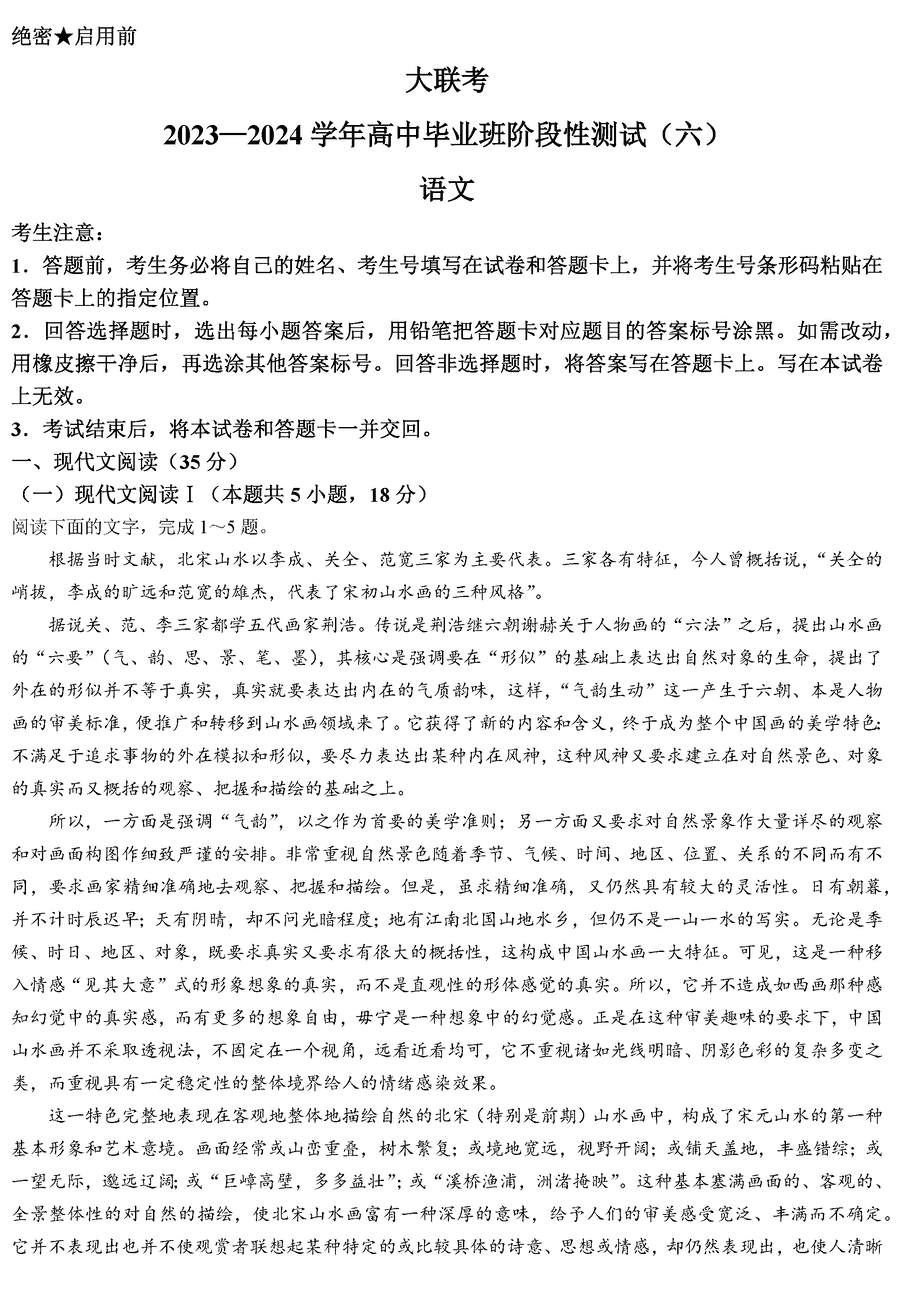 河南天一大联考2024届高三阶段性测试(六)语文试题及答案