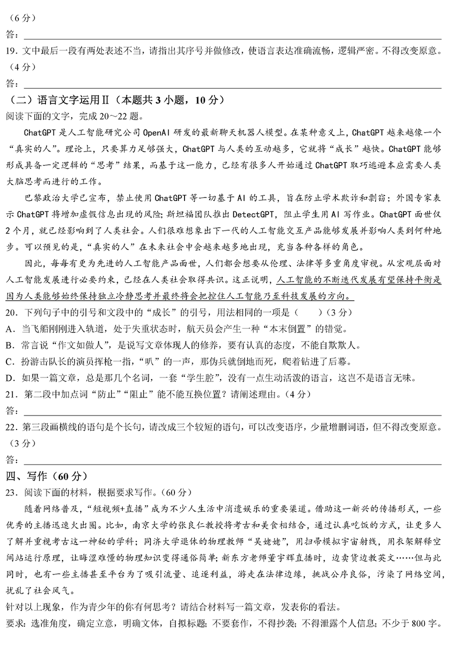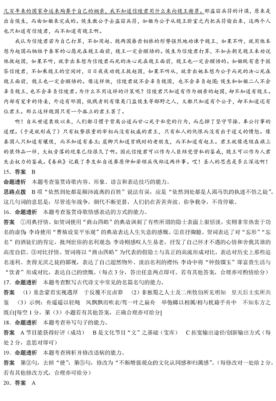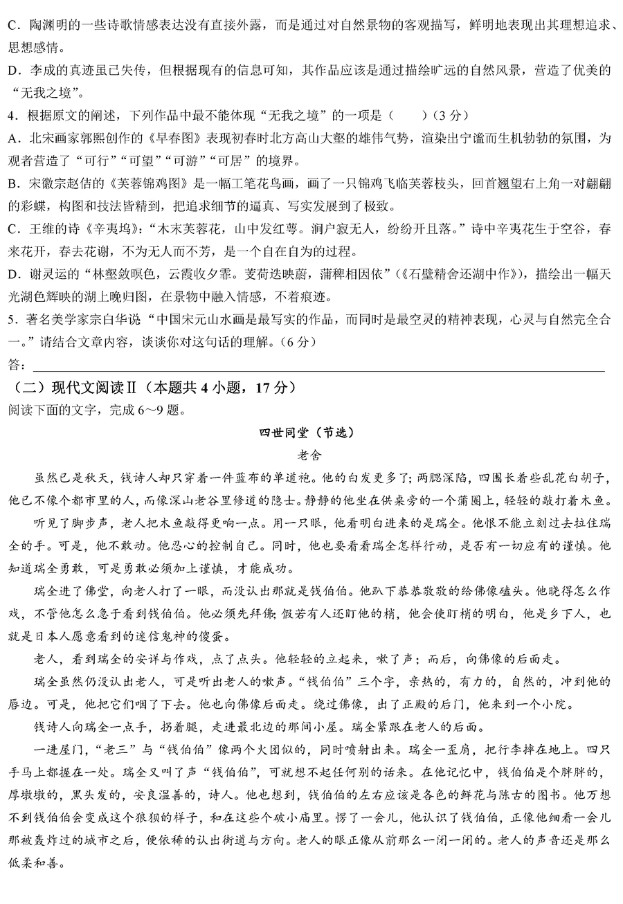 河南天一大联考2024届高三阶段性测试(六)语文试题及答案