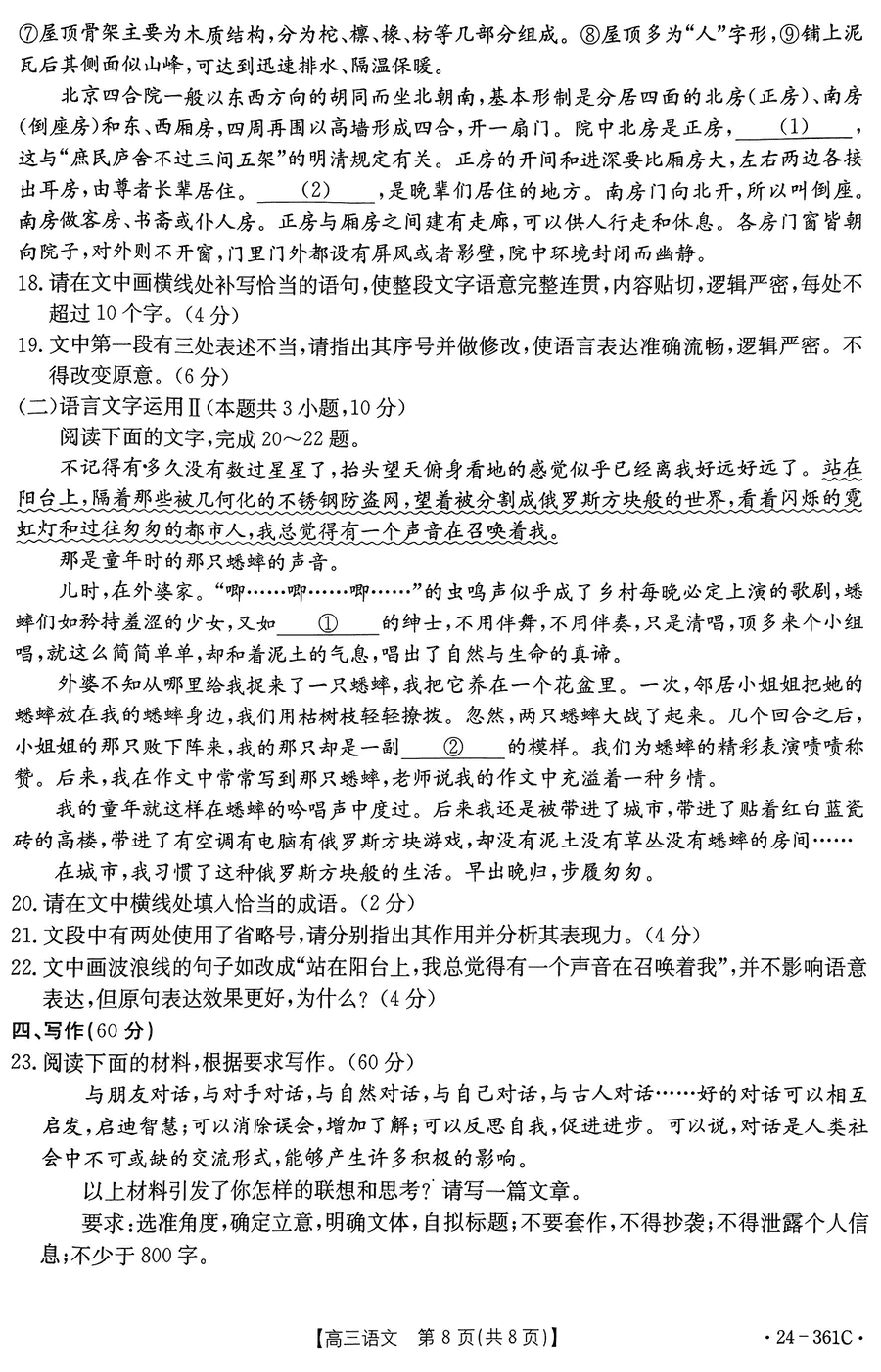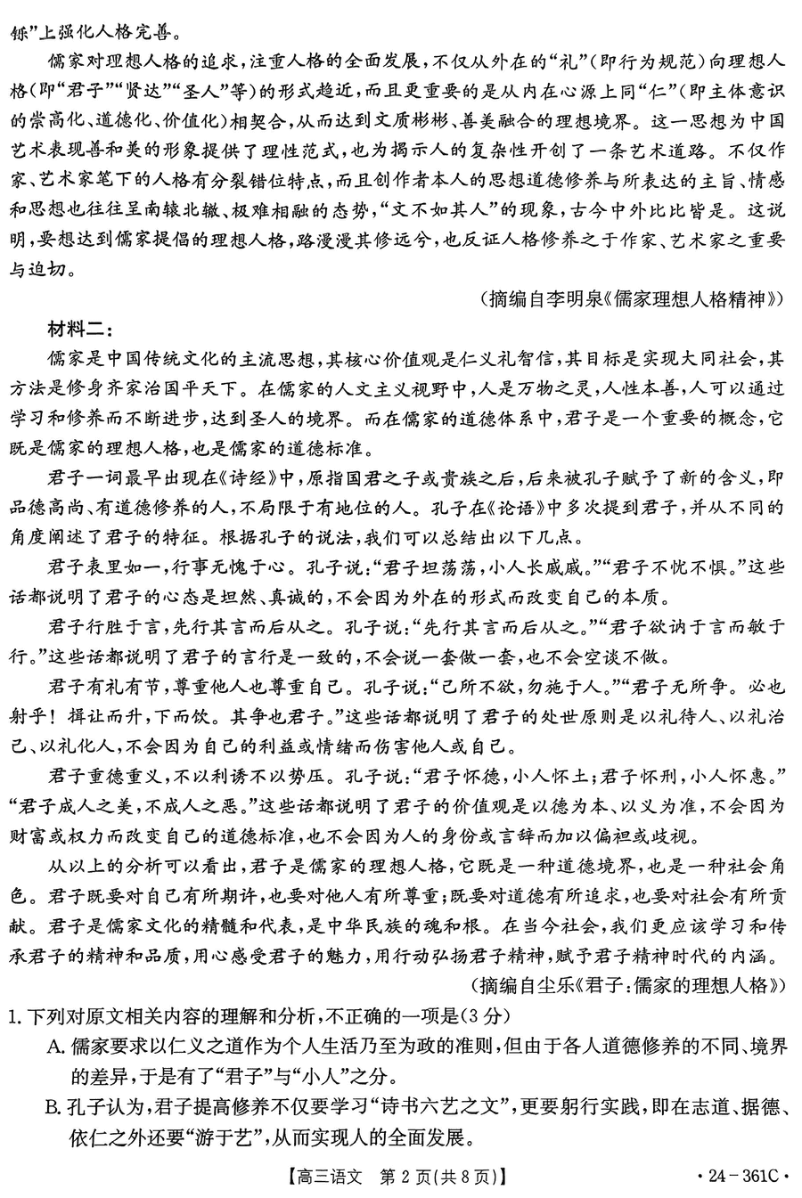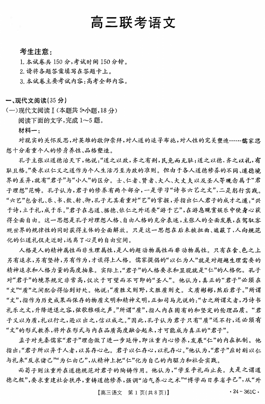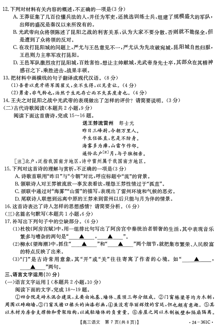 贵州省金太阳2023-2024学年高三下学期开学联考361C语文考试已于近日开考,为方便考生考后及时查看考试情况,查漏补缺、弥补不足,本文整理了贵州金太阳2024届高三下学期开学联考语文试题答案解析相关信息!