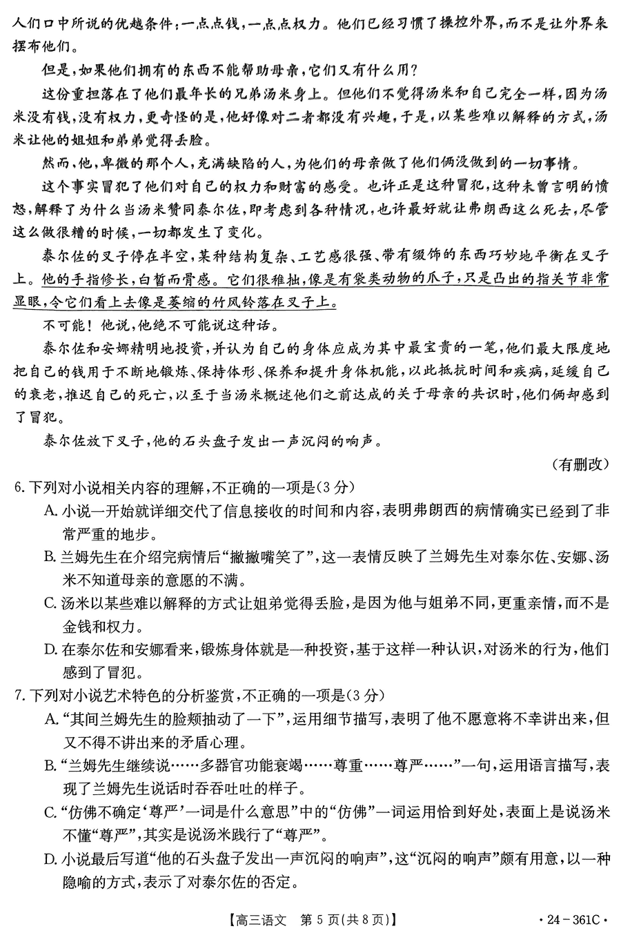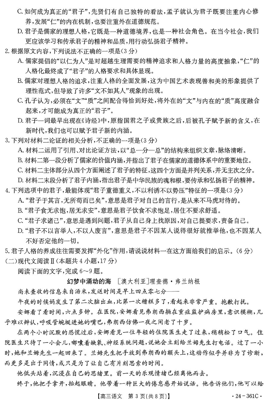 贵州金太阳2024届高三下学期开学联考语文试题及答案