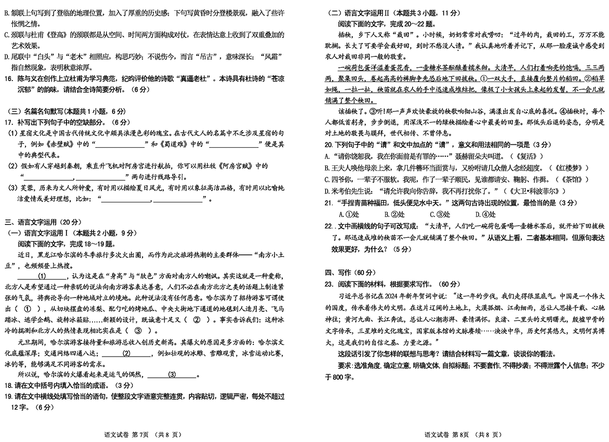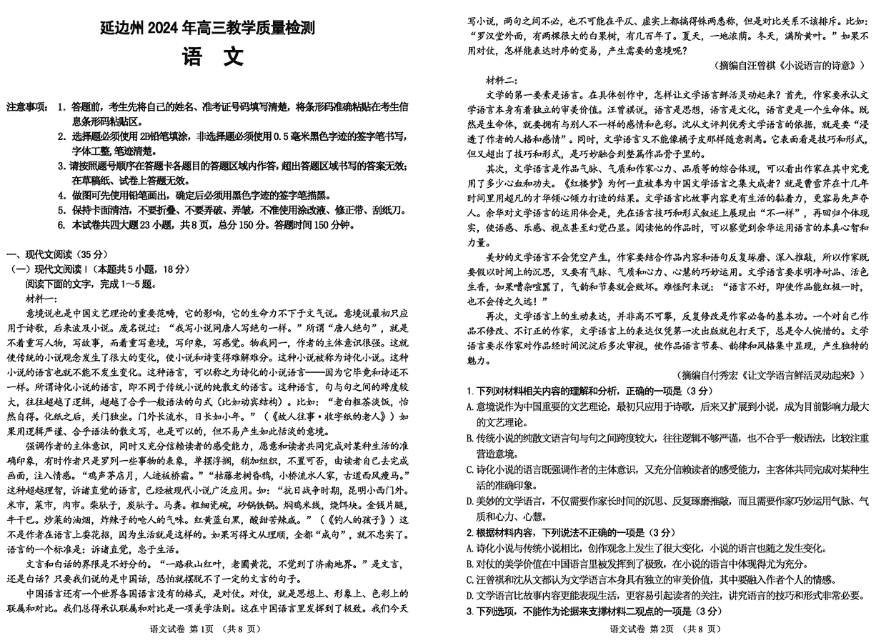吉林延边州一模2024届高三教学质量检测语文考试已于近日开考,为方便考生考后及时查看考试情况,查漏补缺、弥补不足,本文整理了2024届吉林延边高三一模语文试题答案解析相关信息!