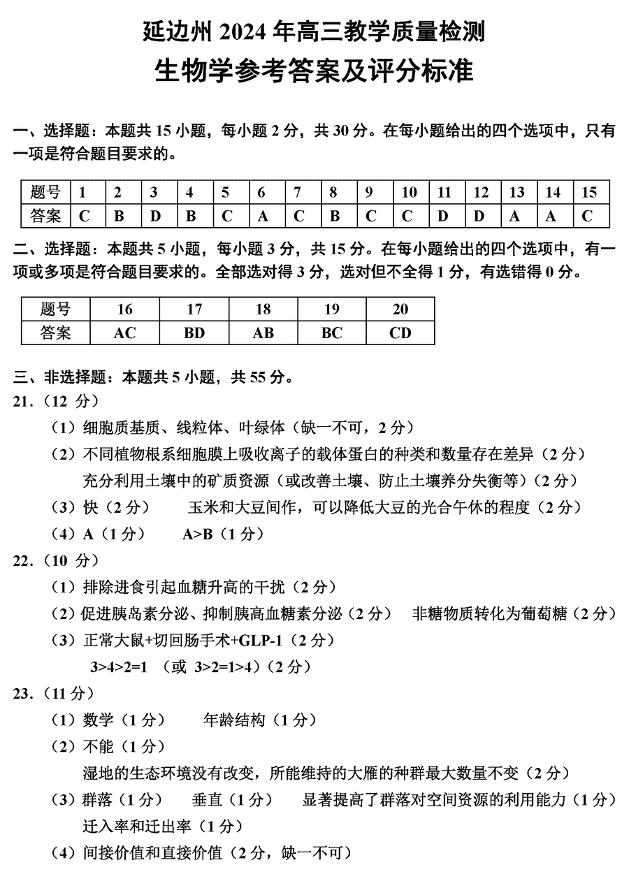 吉林延边州一模2024届高三教学质量检测生物考试已于近日开考,为方便考生考后及时查看考试情况,查漏补缺、弥补不足,本文整理了2024届吉林延边高三一模生物试题答案解析相关信息!
