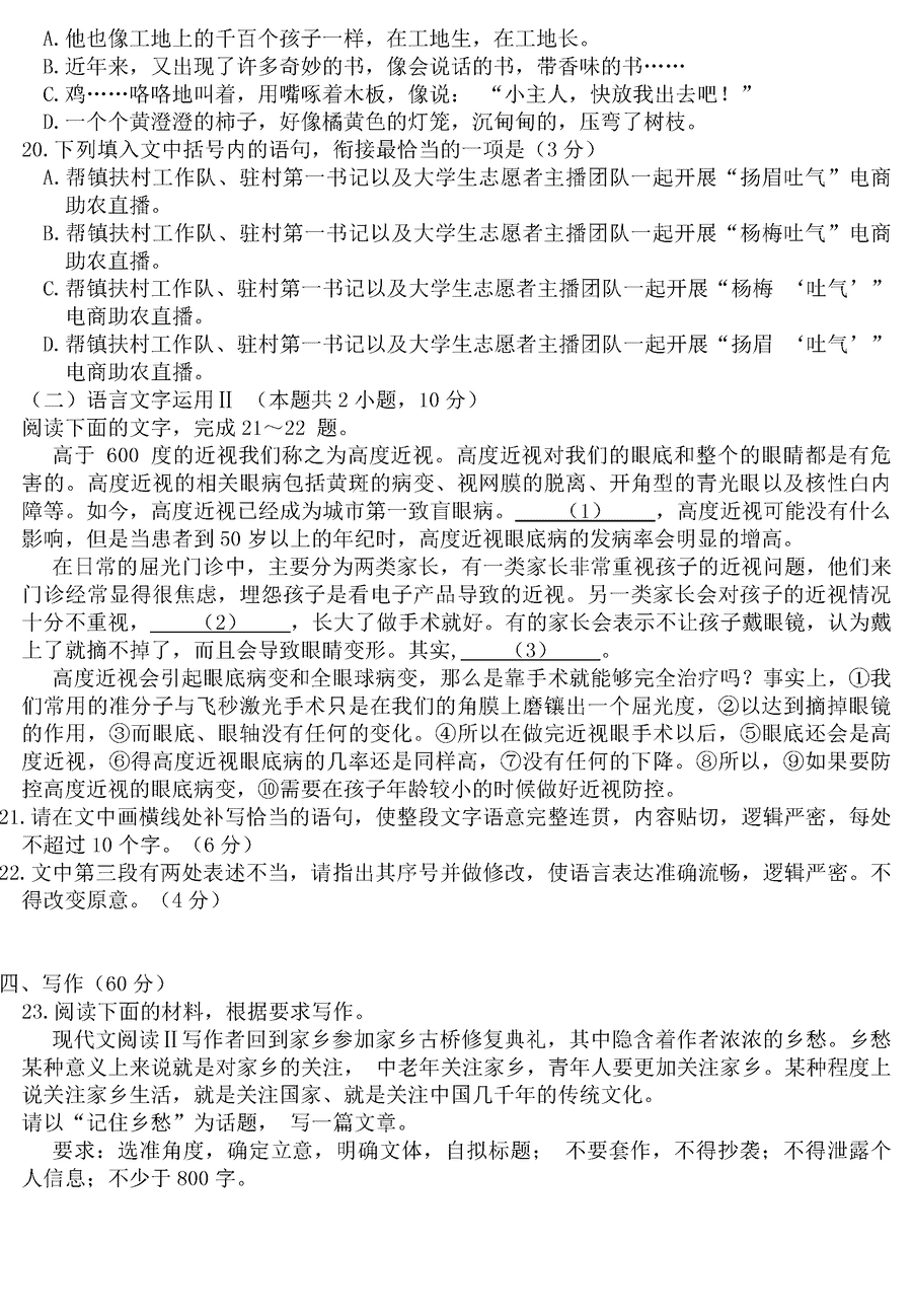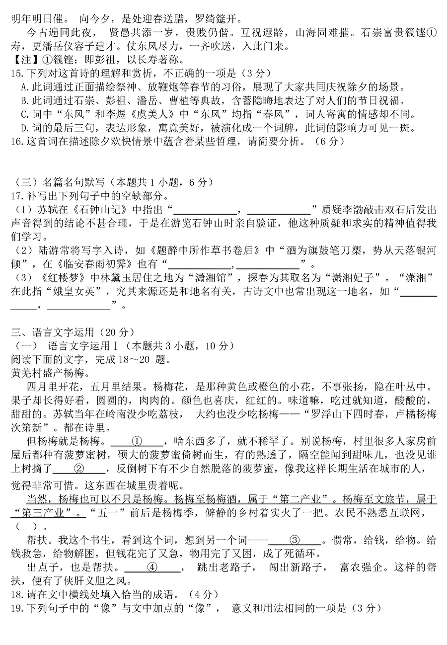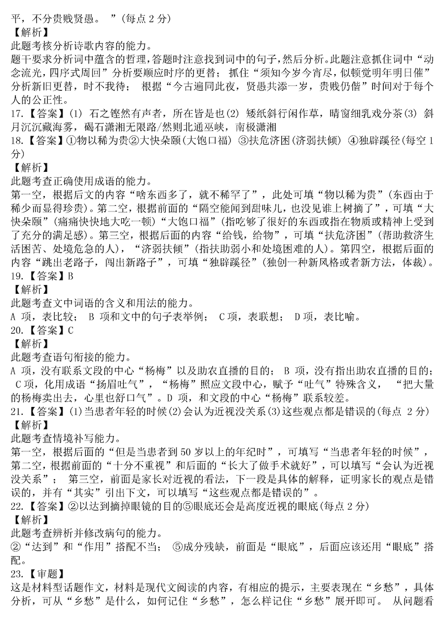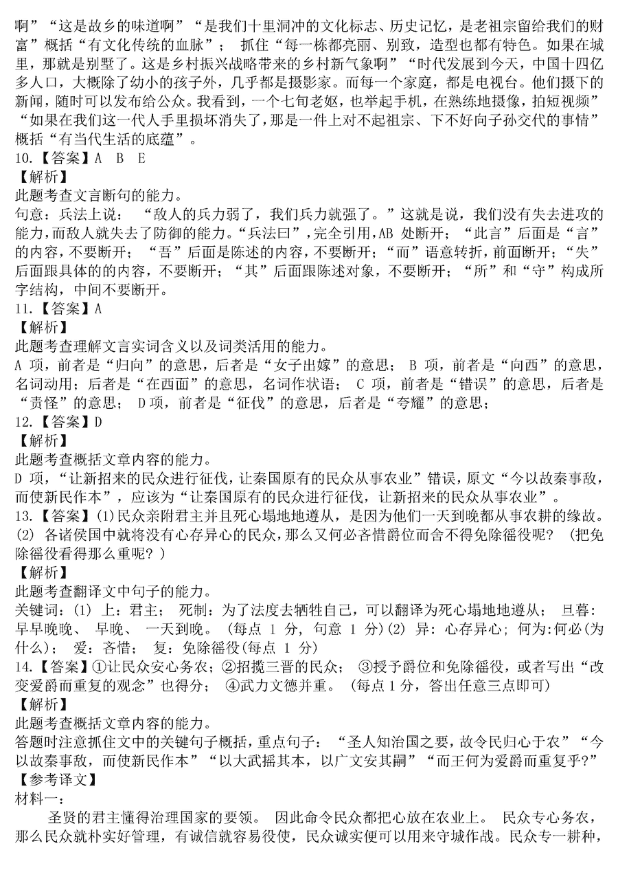 语文试题及答案解析