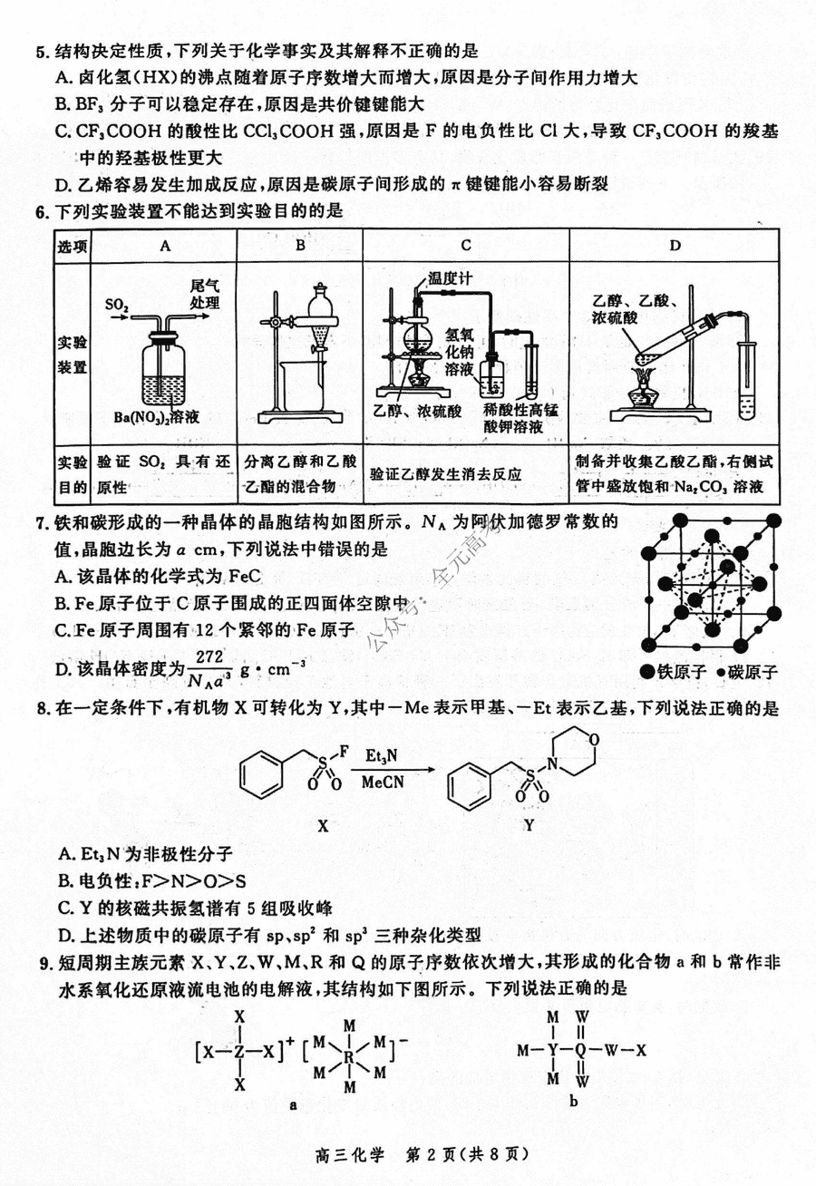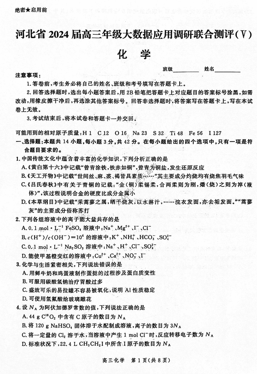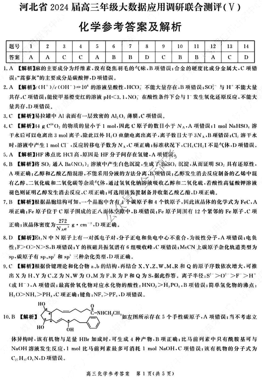 河北省2024届高三大数据应用调研联合测评V化学试题及答案