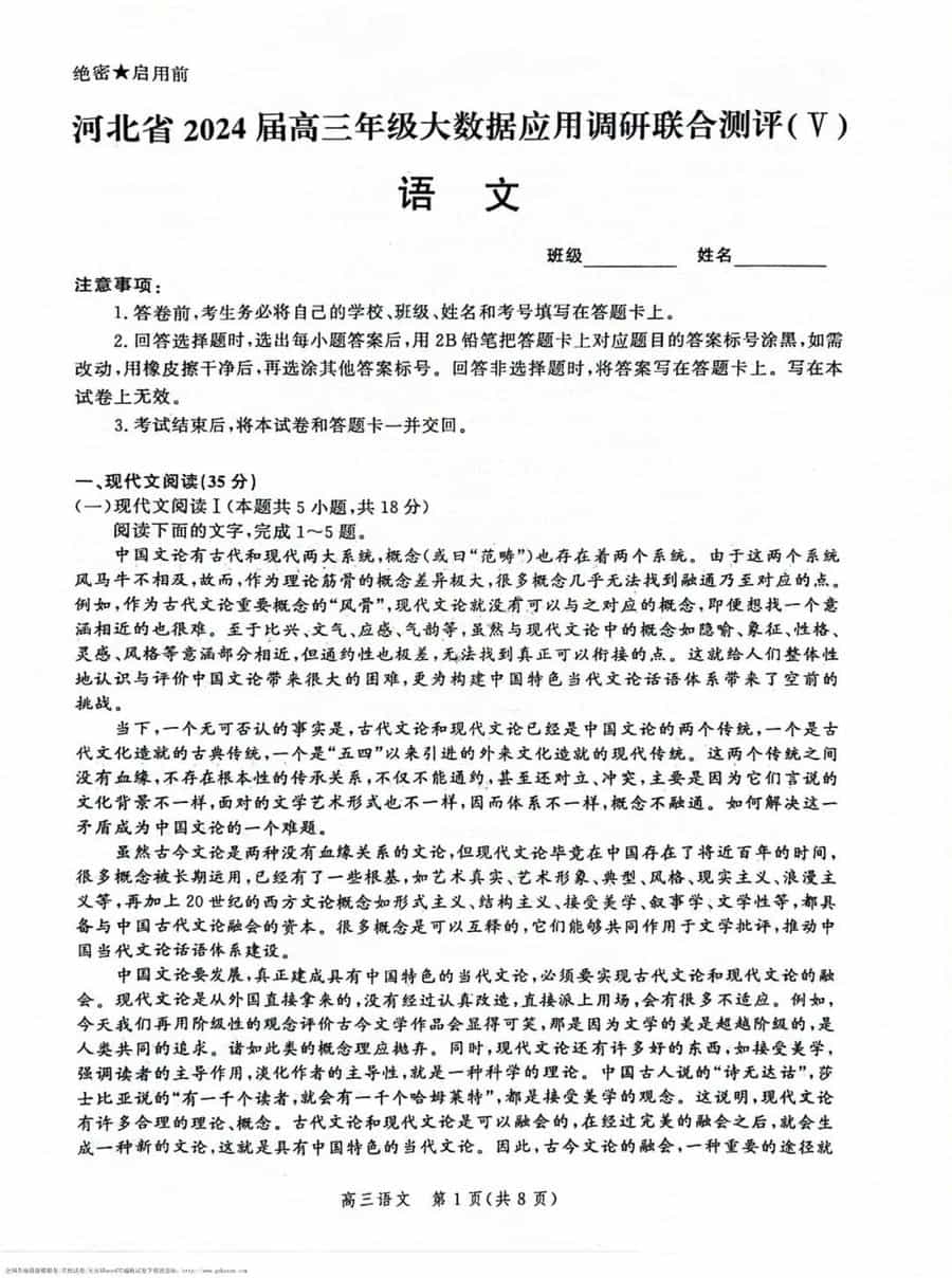 河北省2024届高三大数据应用调研联合测评V语文试题及答案