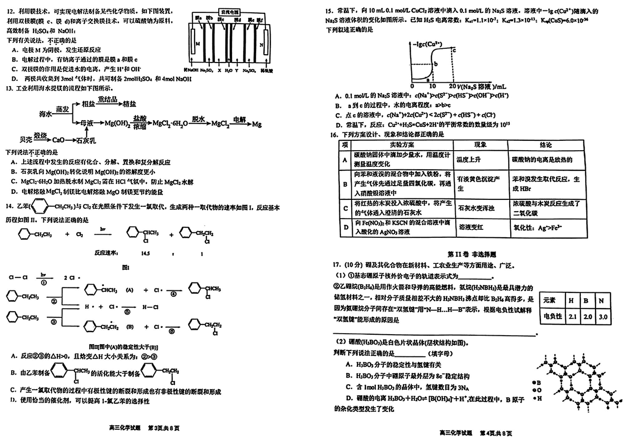 浙江名校协作体2024届高三下学期联考化学试题及答案