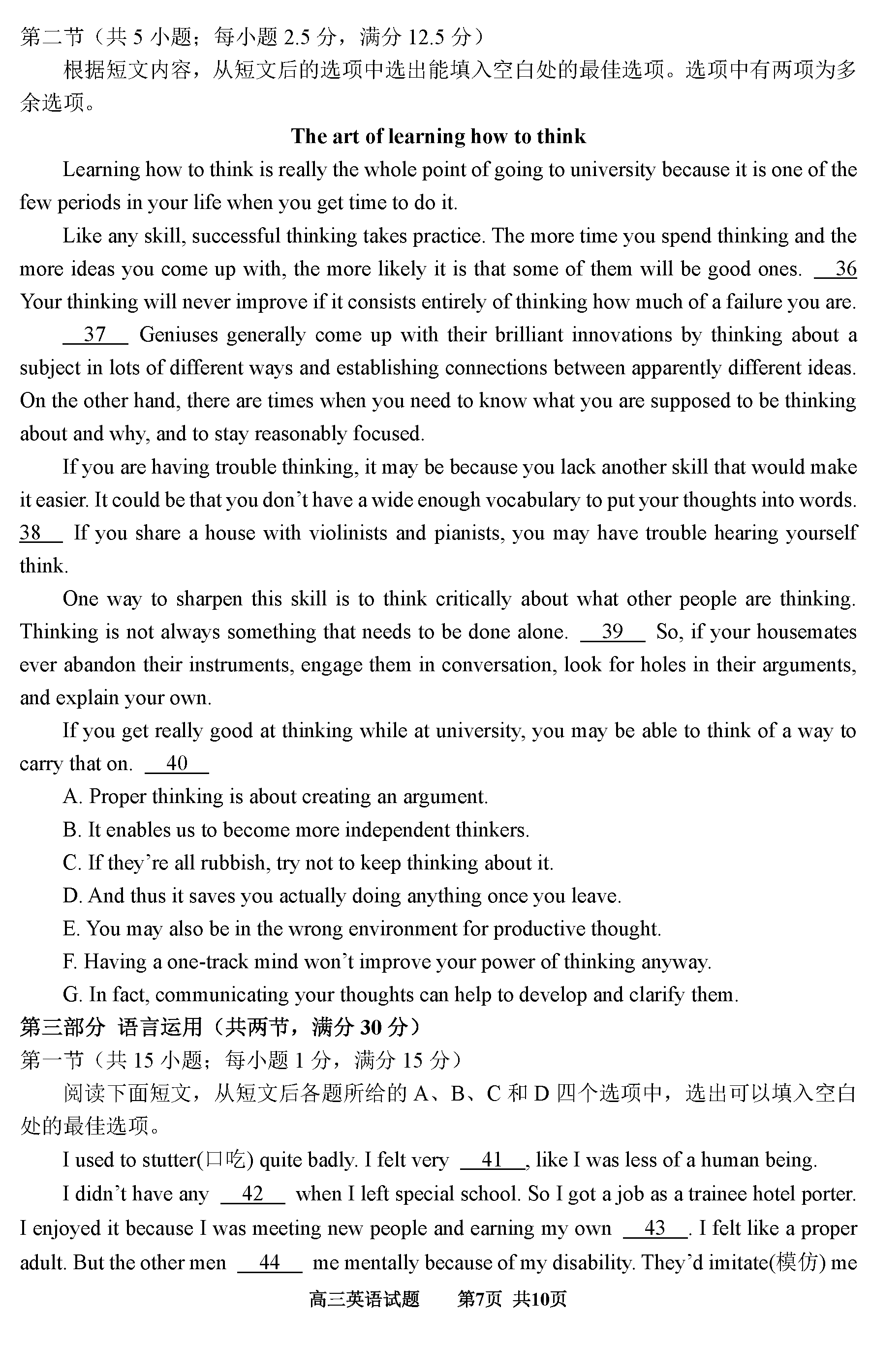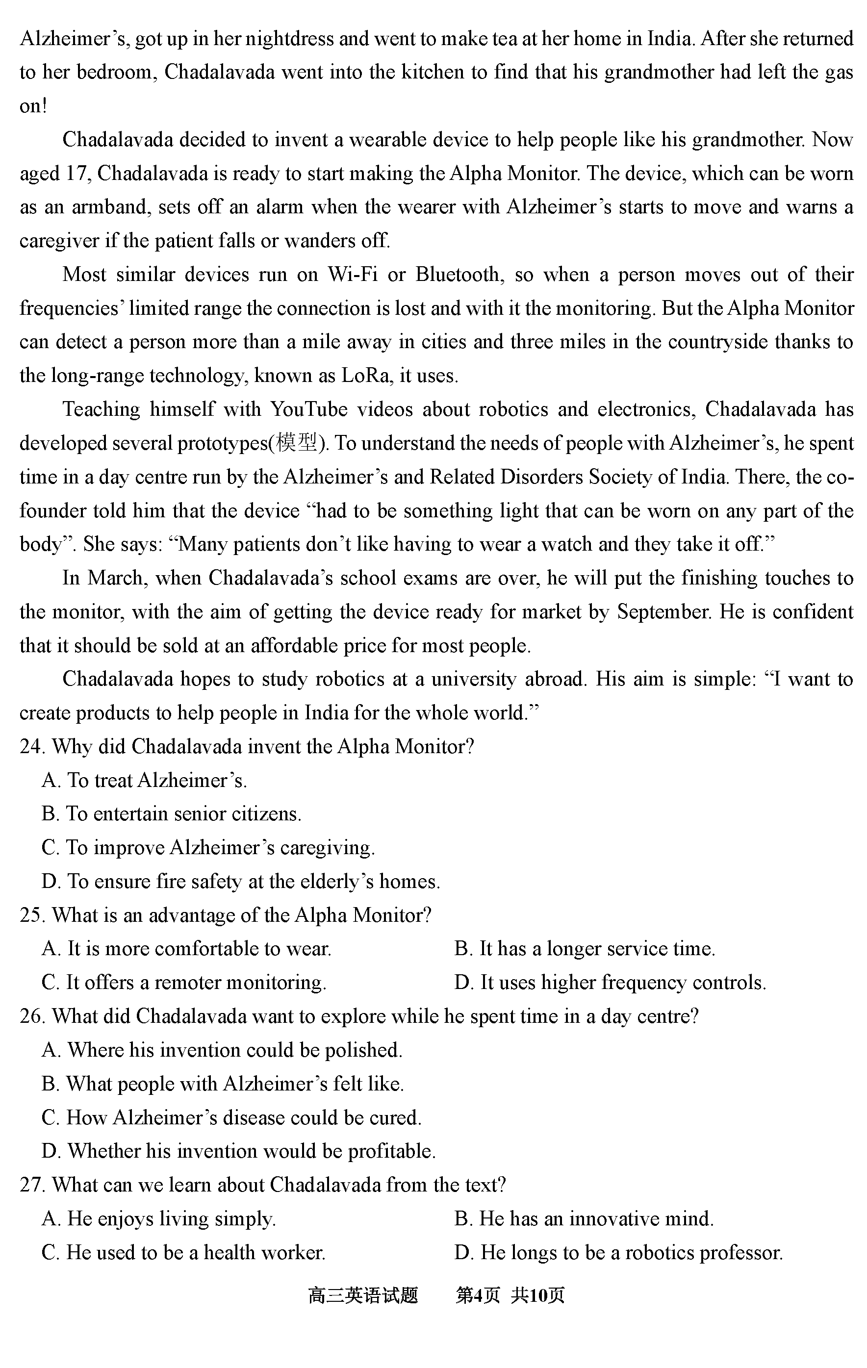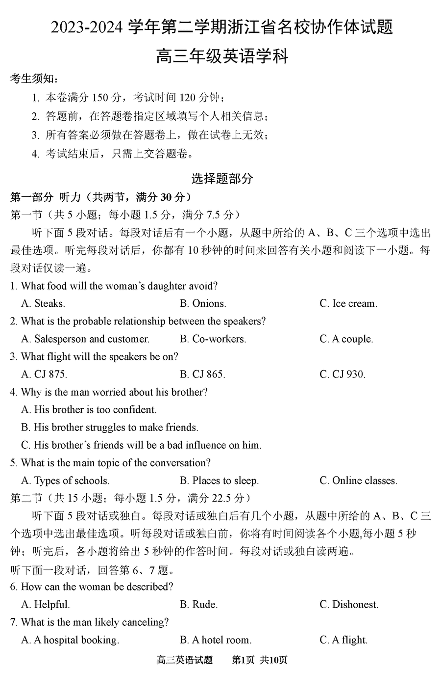 浙江名校协作体2024届高三下学期联考英语试题及答案