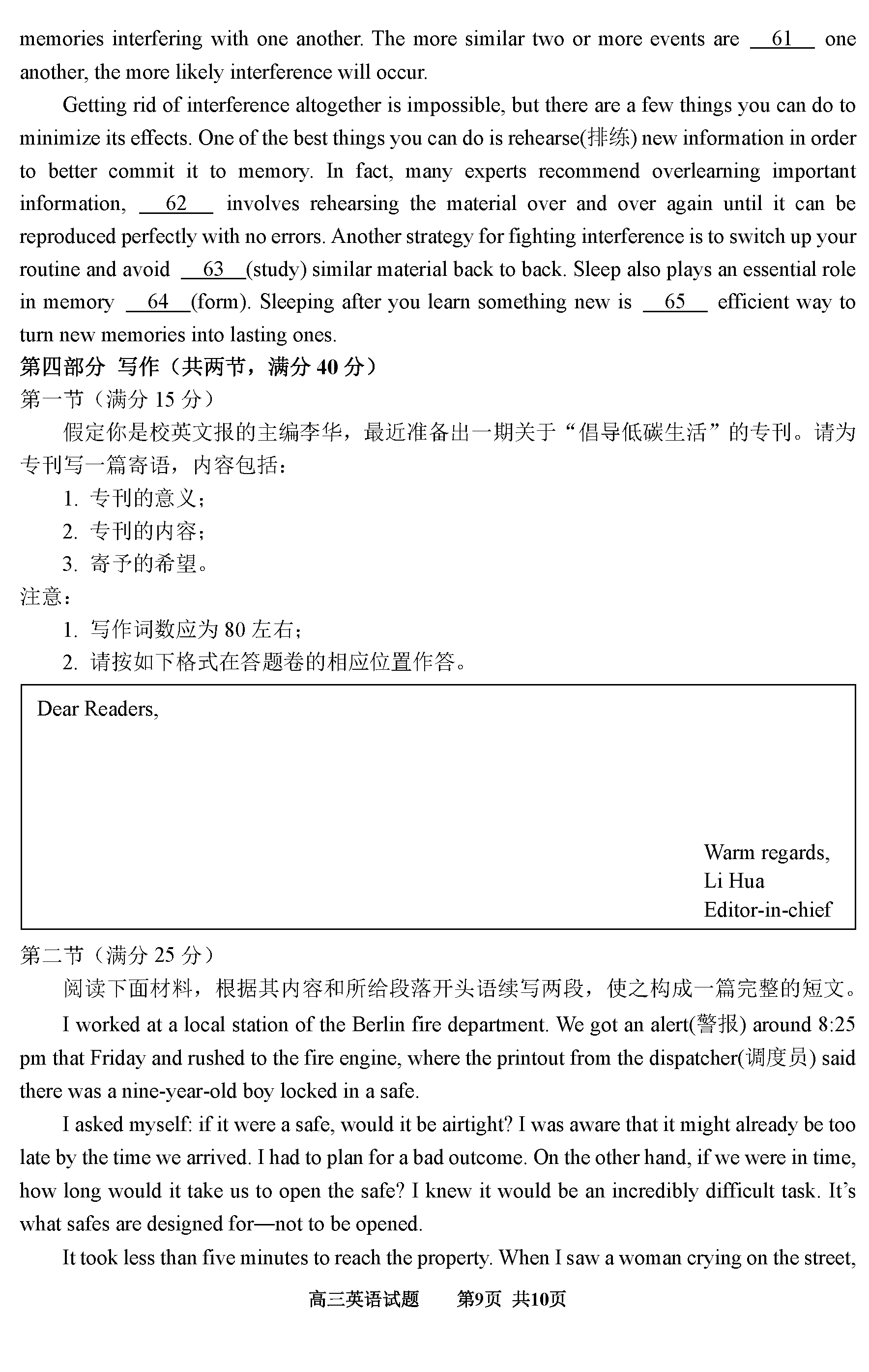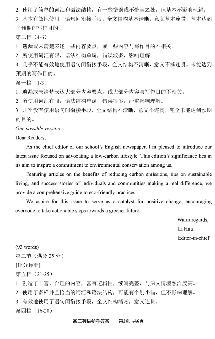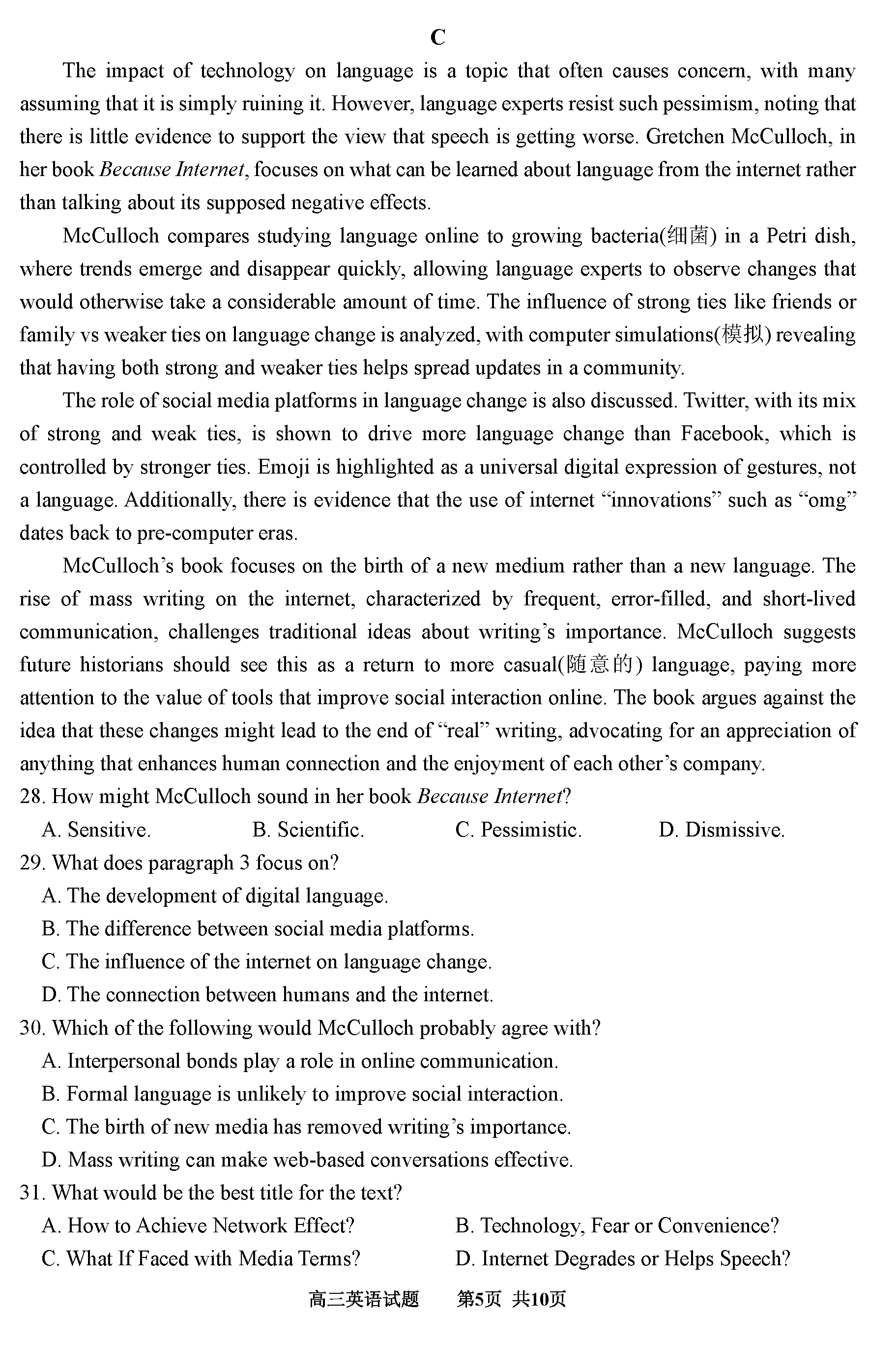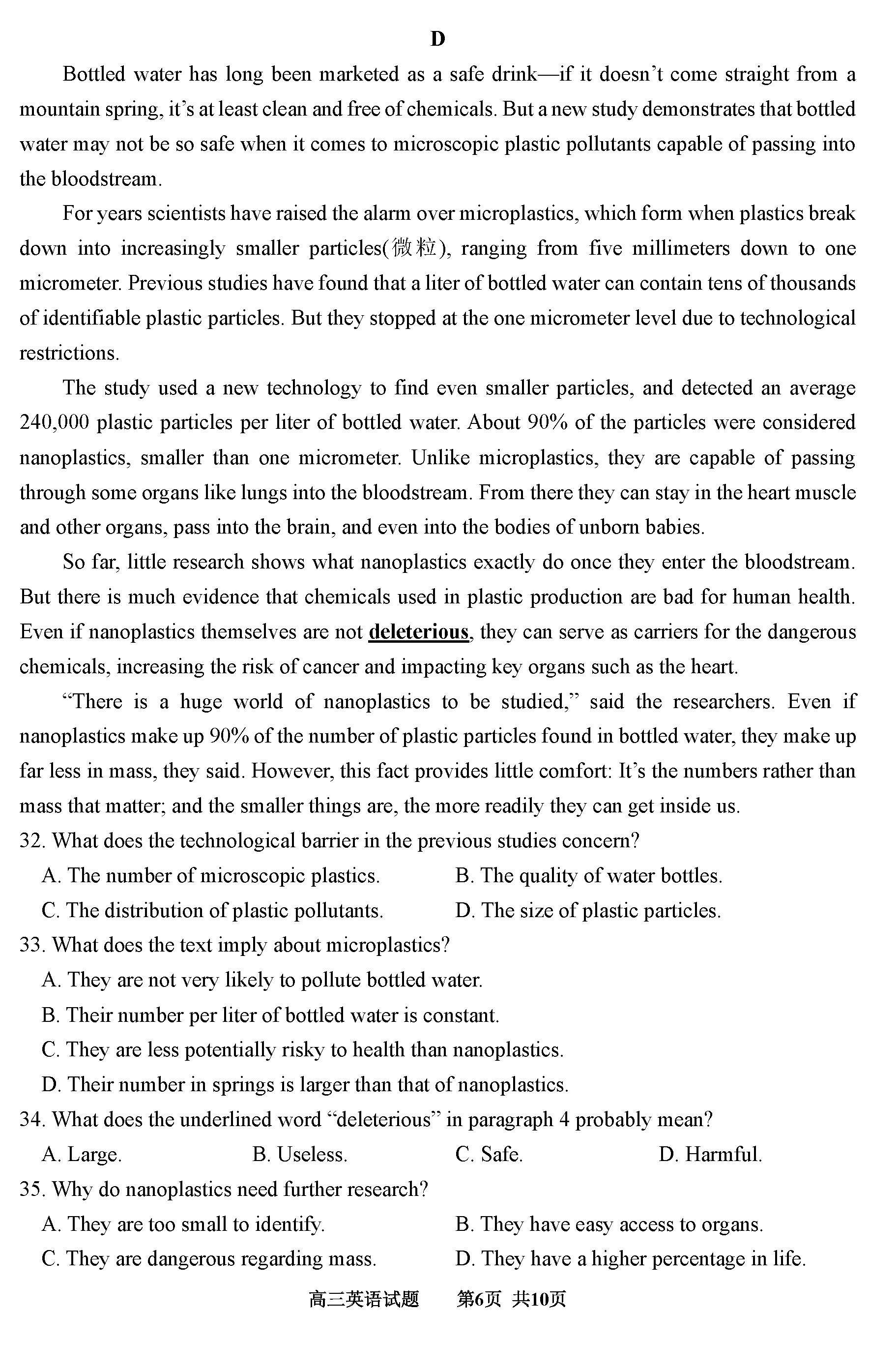 浙江名校协作体2024届高三下学期联考英语试题及答案