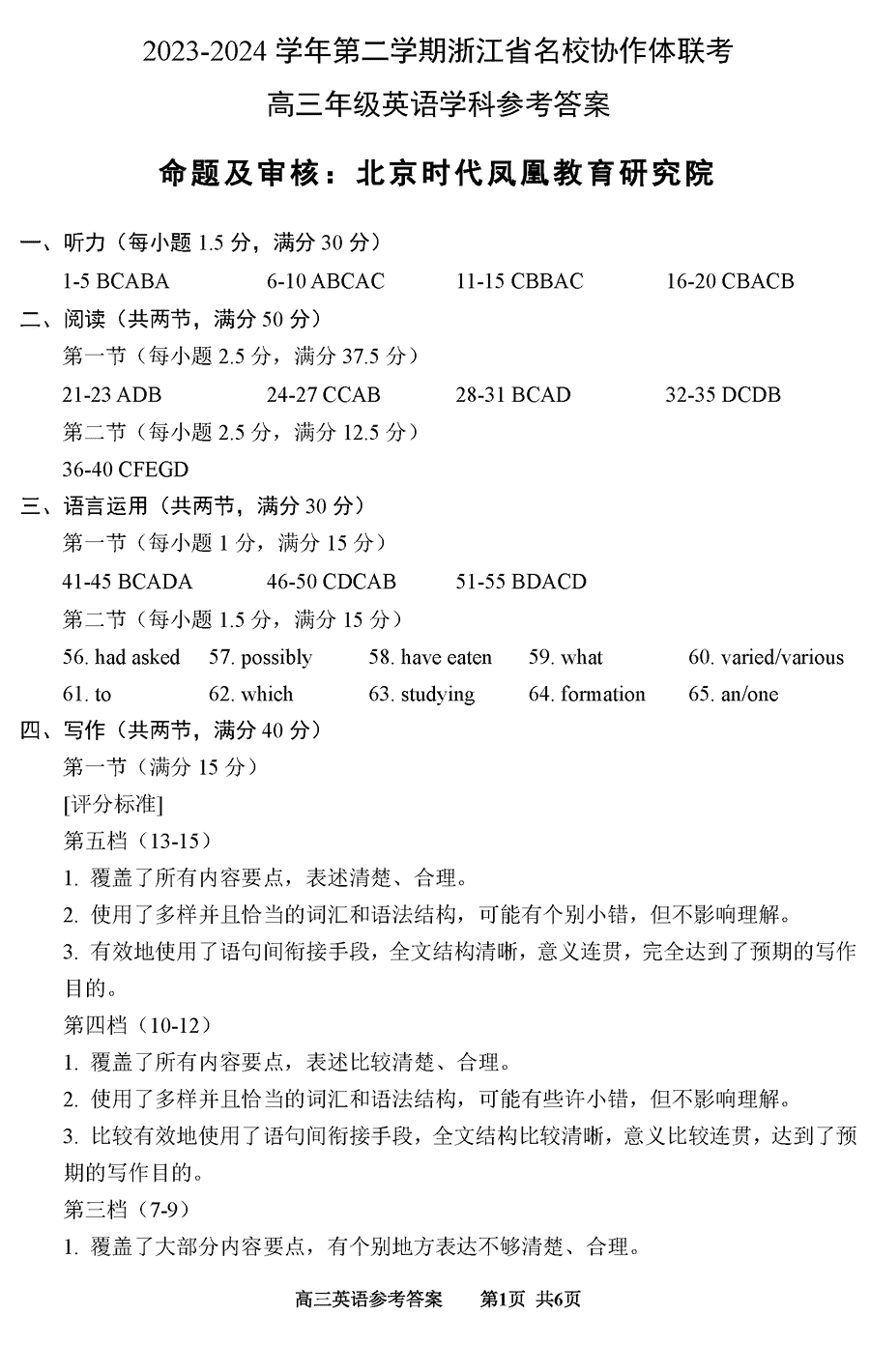 浙江名校协作体2024届高三下学期联考英语考试已于近日开考,为方便考生考后及时查看考试情况,查漏补缺、弥补不足,本文整理了浙江名校协作体2024届高三下学期联考英语试题答案解析相关信息!