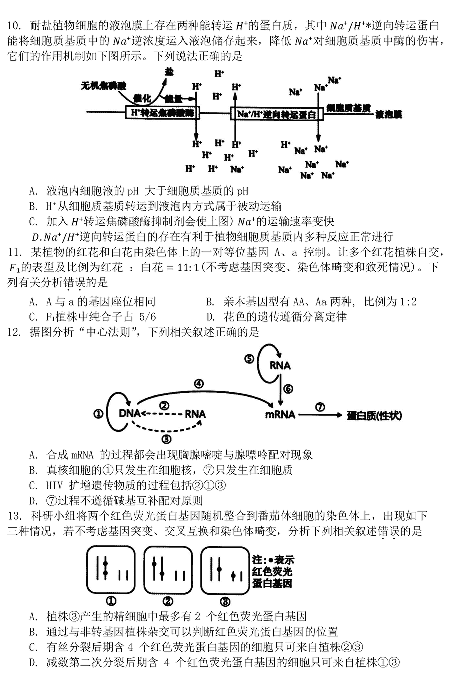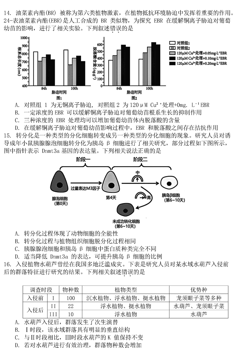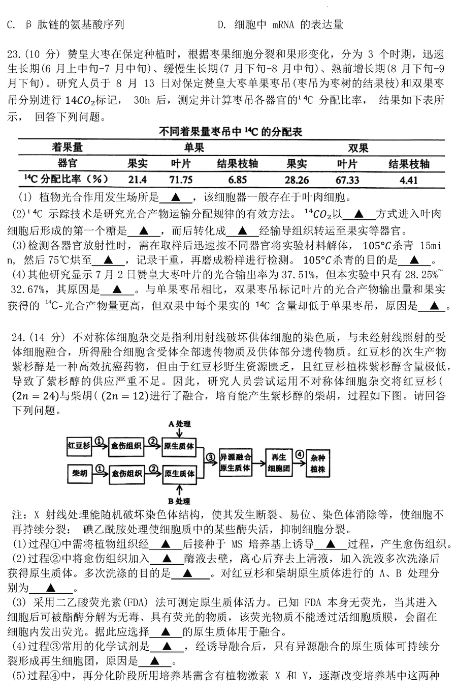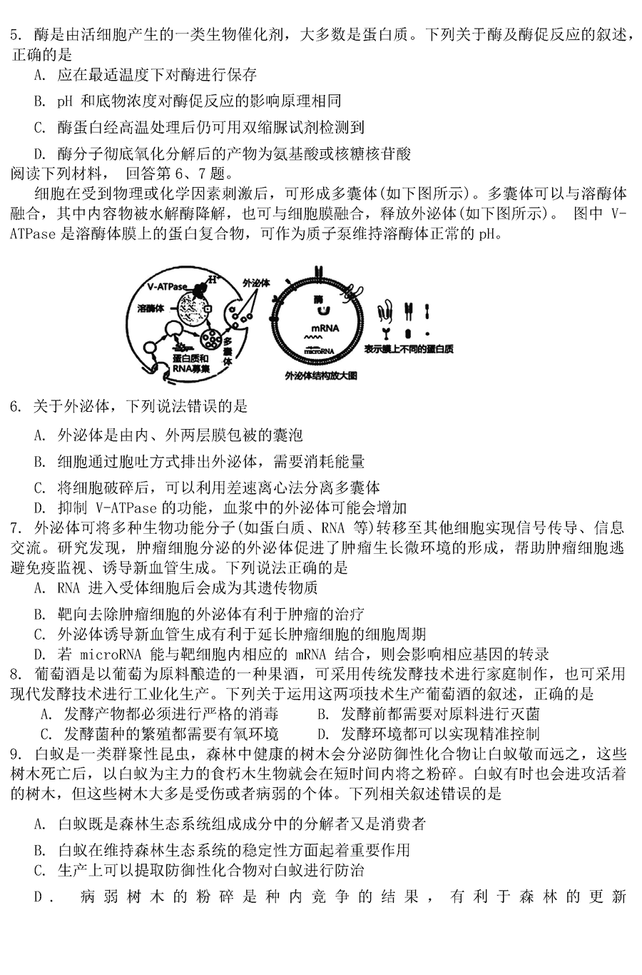 浙江名校协作体2024届高三下学期联考生物试题及答案