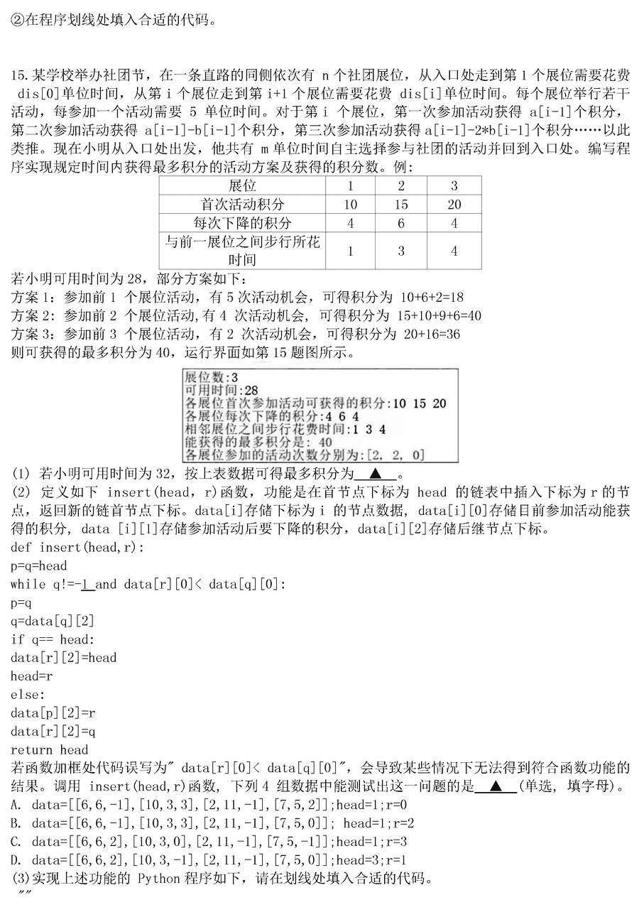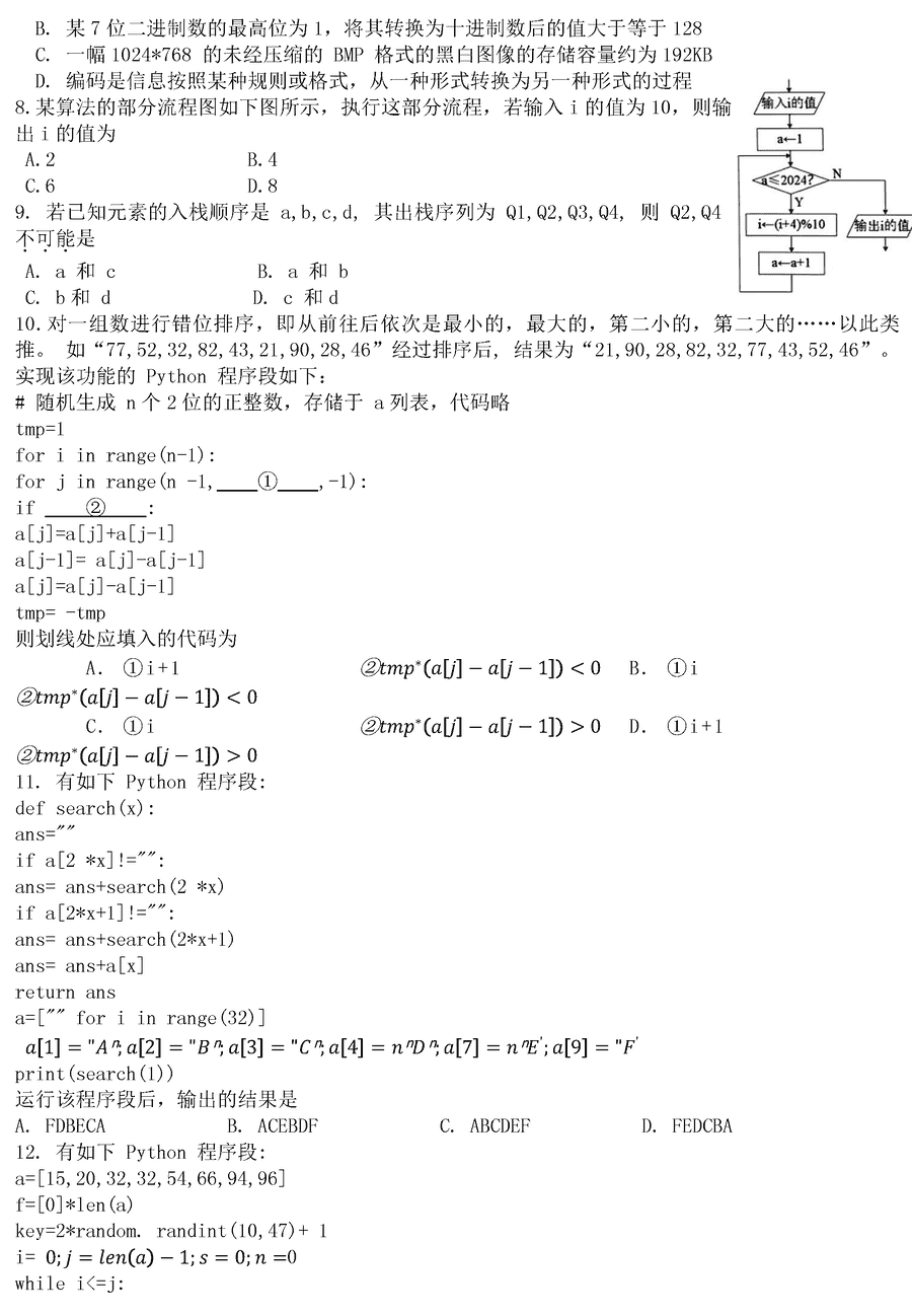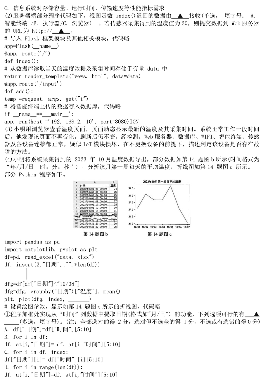 浙江名校协作体2024届高三下学期联考技术试题及答案