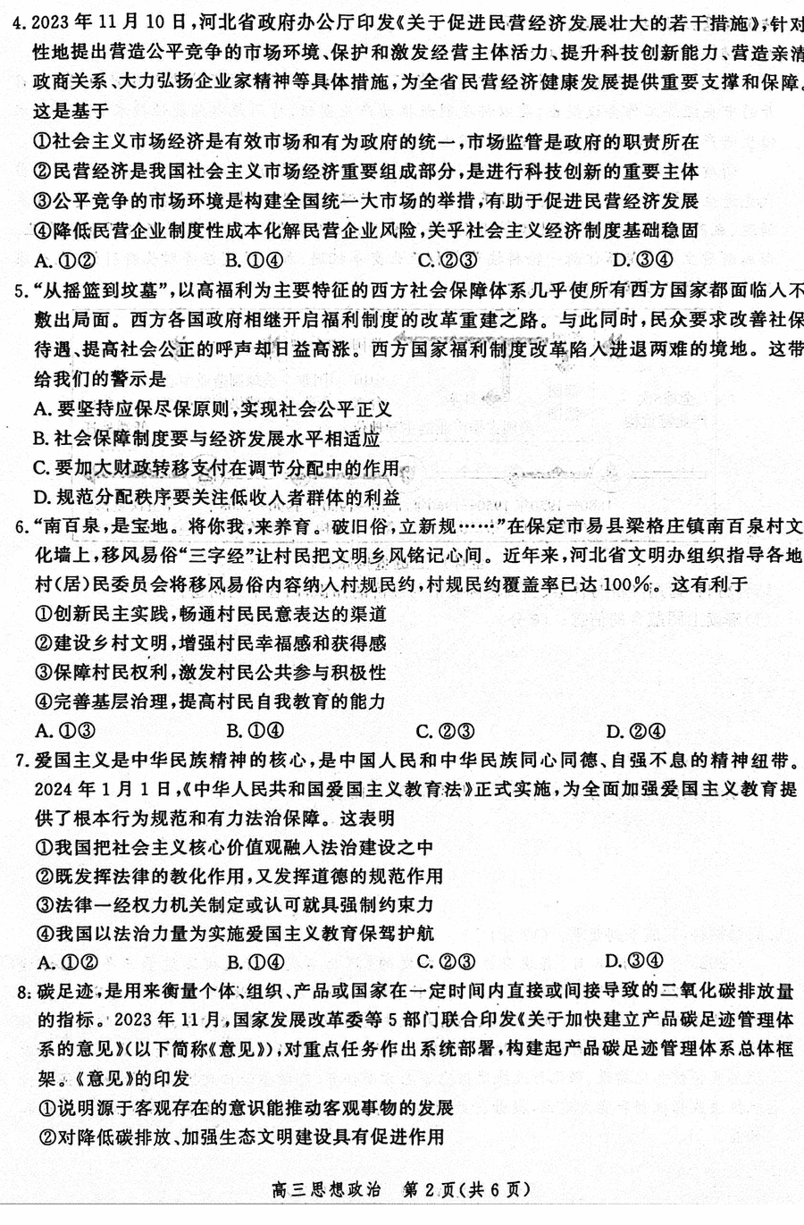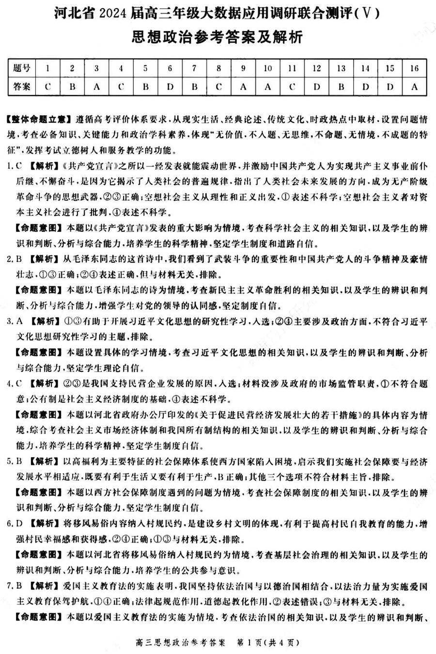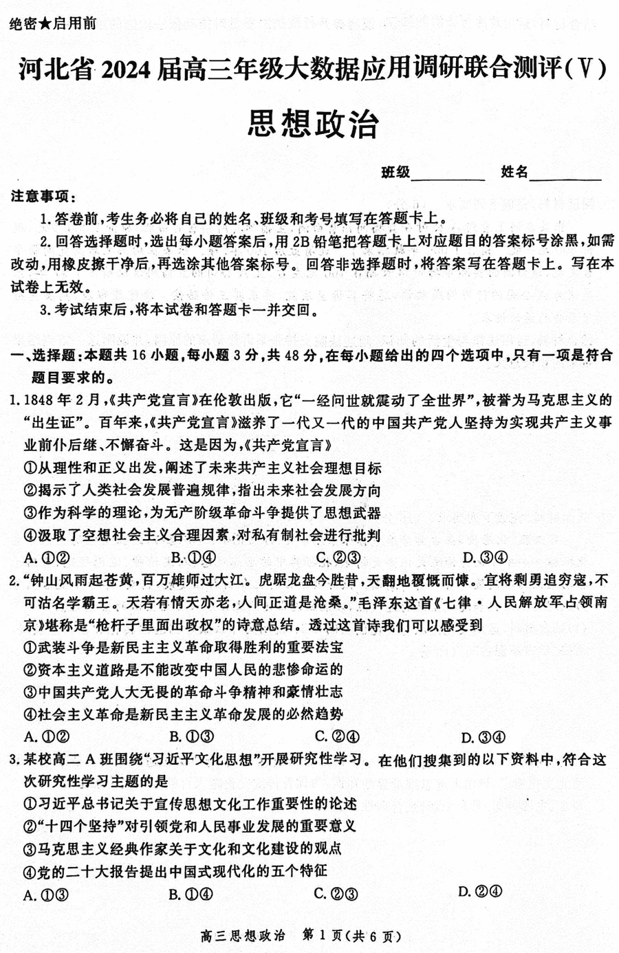 河北省2024届高三大数据应用调研联合测评V政治试题及答案