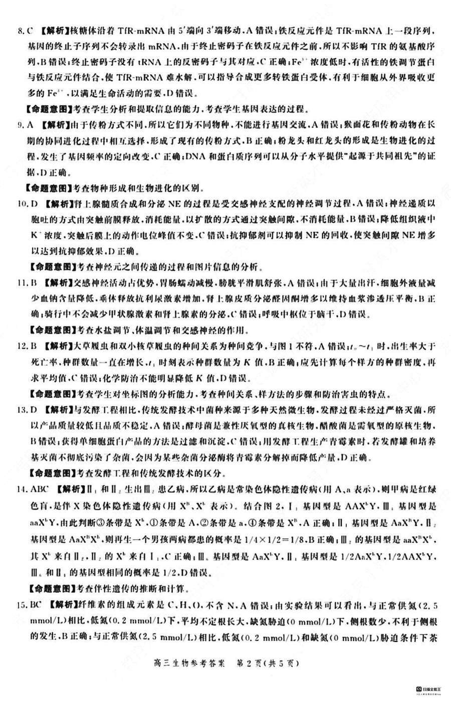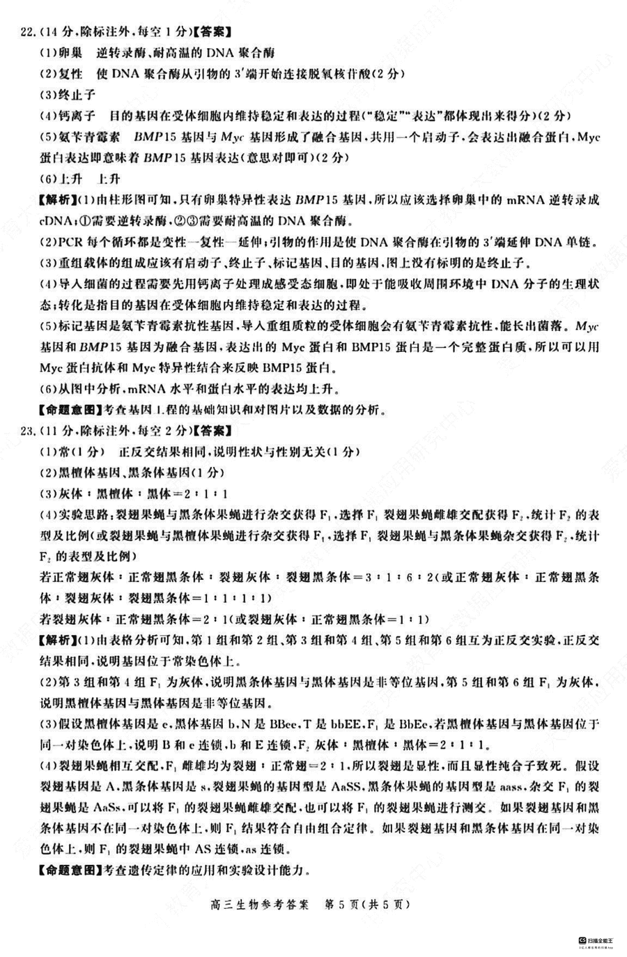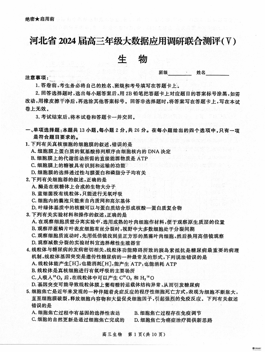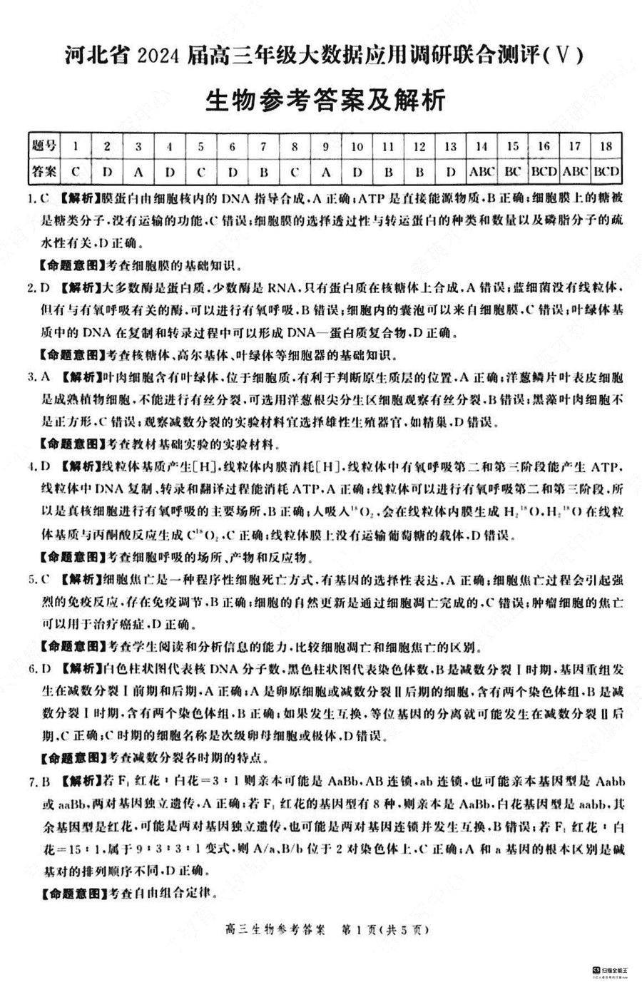 河北省2024届高三大数据应用调研联合测评V生物考试已于近日开考,为方便考生考后及时查看考试情况,查漏补缺、弥补不足,本文整理了河北省2024届高三大数据应用调研联合测评V生物试题答案解析相关信息!