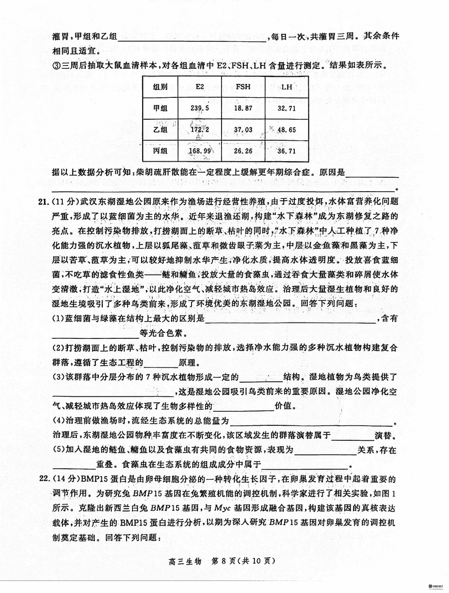 河北省2024届高三大数据应用调研联合测评V生物试题及答案
