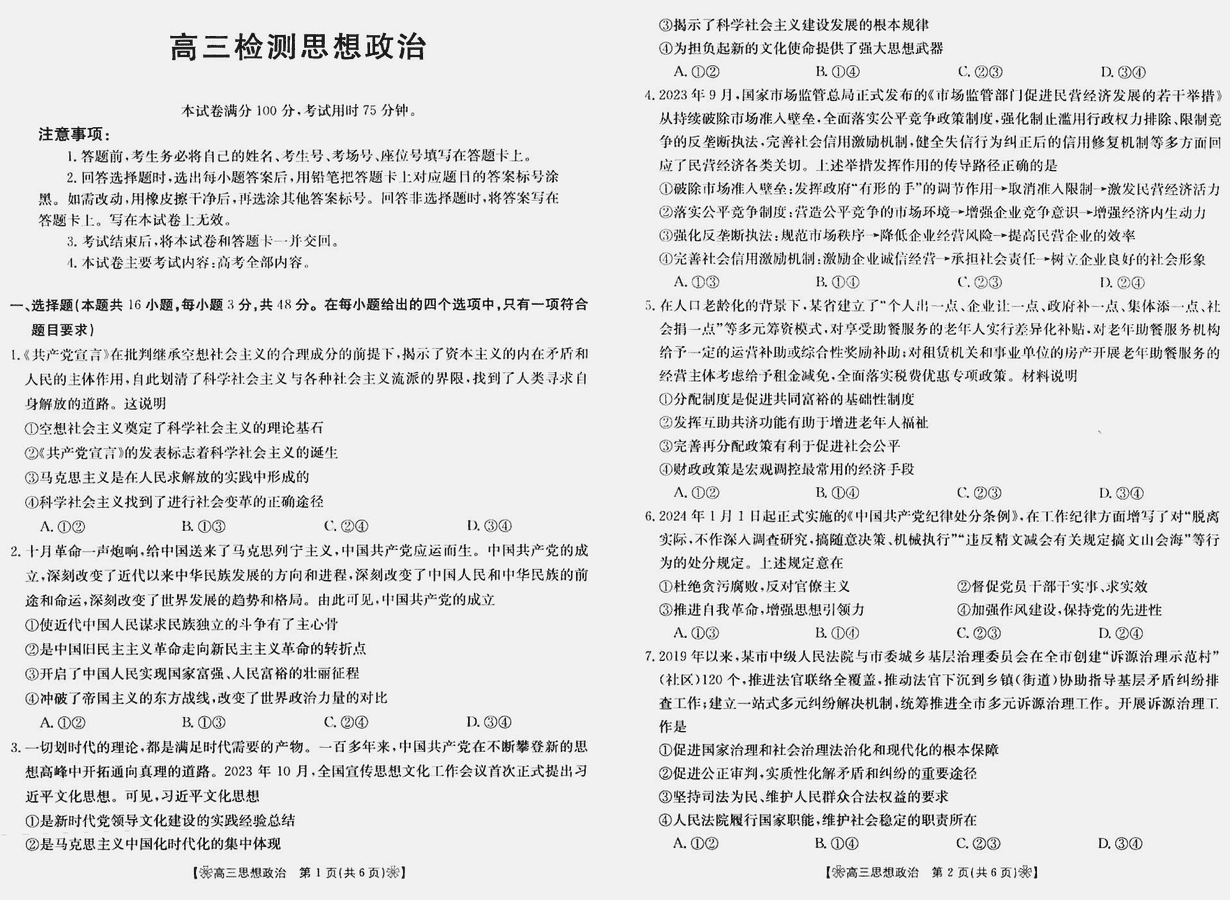 2024届甘肃金太阳347C高三下学期2月联考政治考试已于近日开考,为方便考生考后及时查看考试情况,查漏补缺、弥补不足,本文整理了2024届甘肃2024届金太阳高三下学期2月联考政治试题答案解析相关信息!