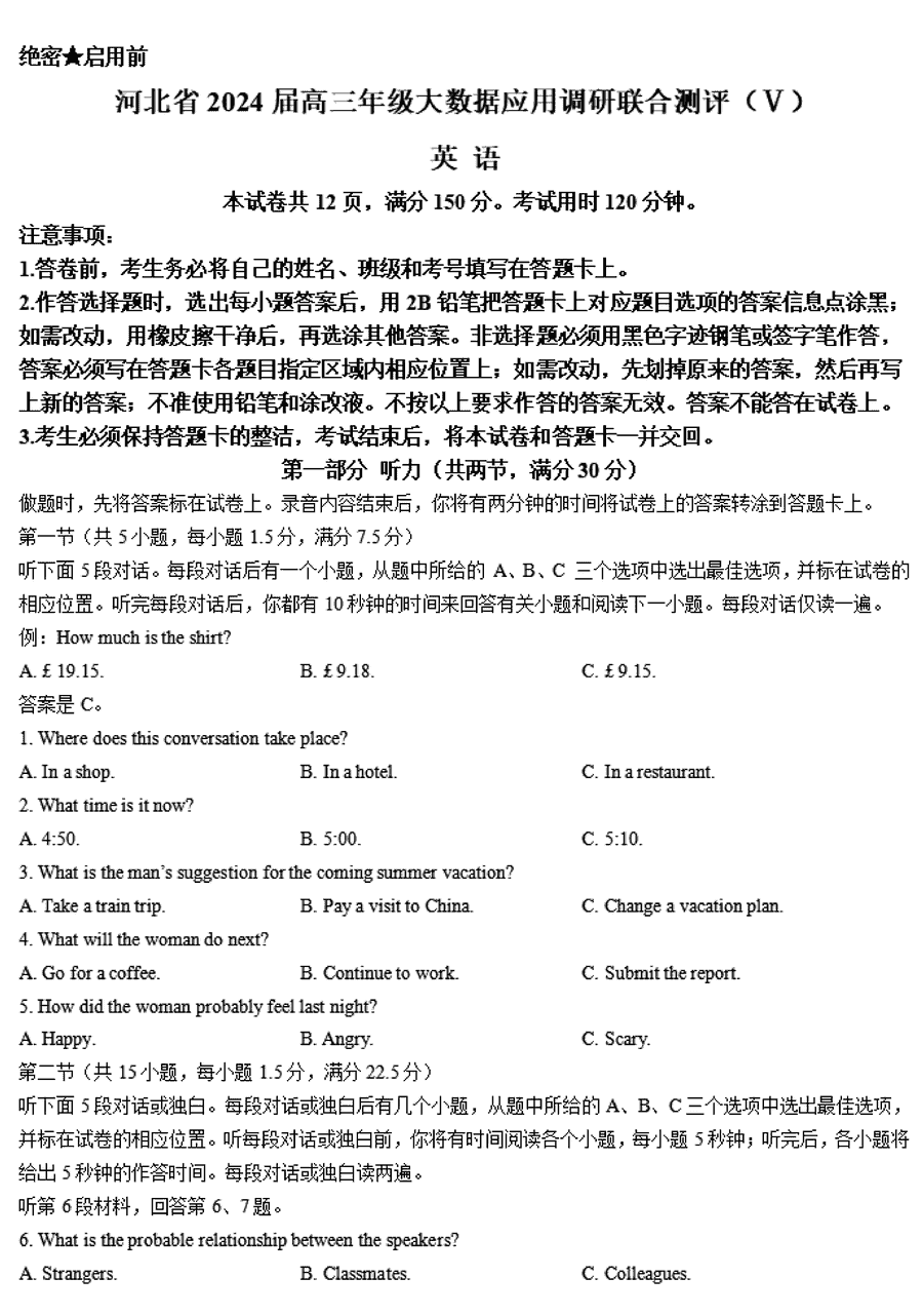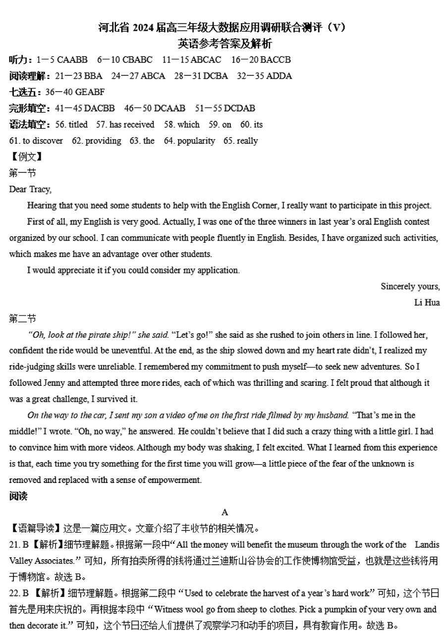 河北省2024届高三大数据应用调研联合测评V英语试题及答案