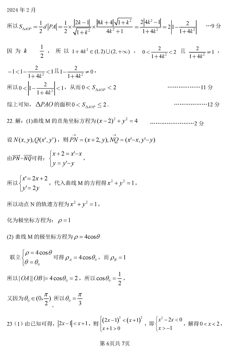 四川南山中学2024届高三下学期入学考文科数学试题及答案