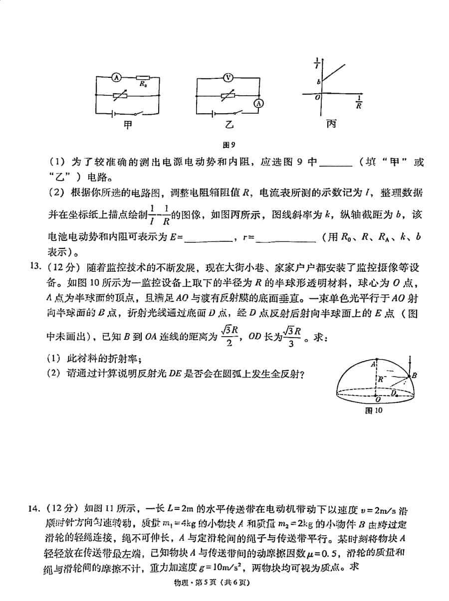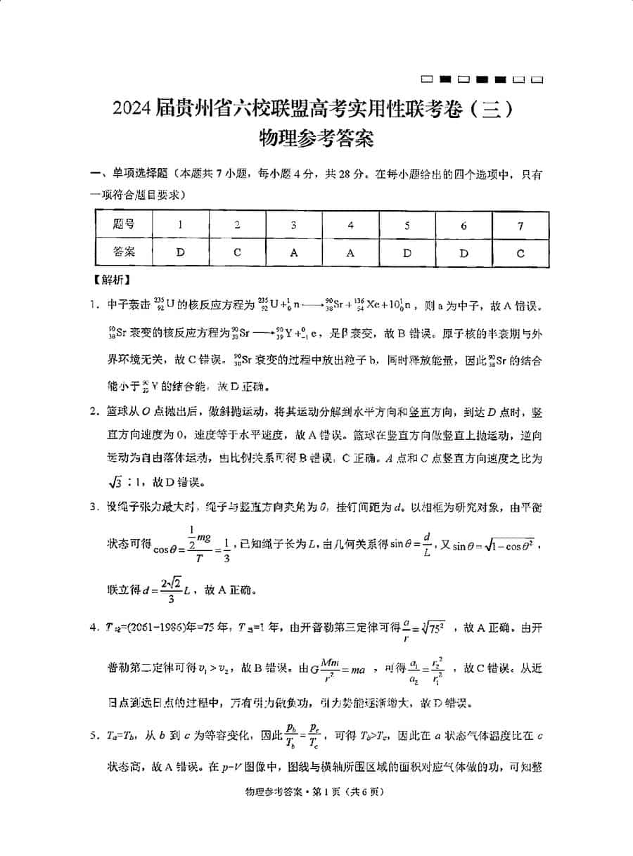 贵州六校联盟2024届高三实用性联考卷(三)物理试题及答案