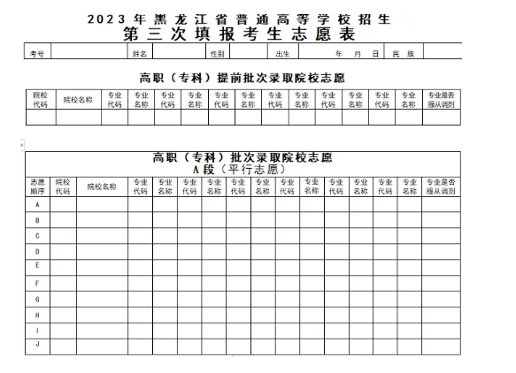 黑龙江高考志愿填报表范本