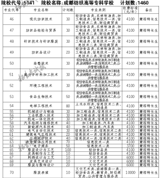 高职单招是在高考统招前的一种招生方式,现在也有很多同学会考虑选择走高职单招。小编今天整理了2021成都纺织高等专科学校高职单招在四川省招生专业及计划的相关内容,来看一下,希望对你有所帮助!