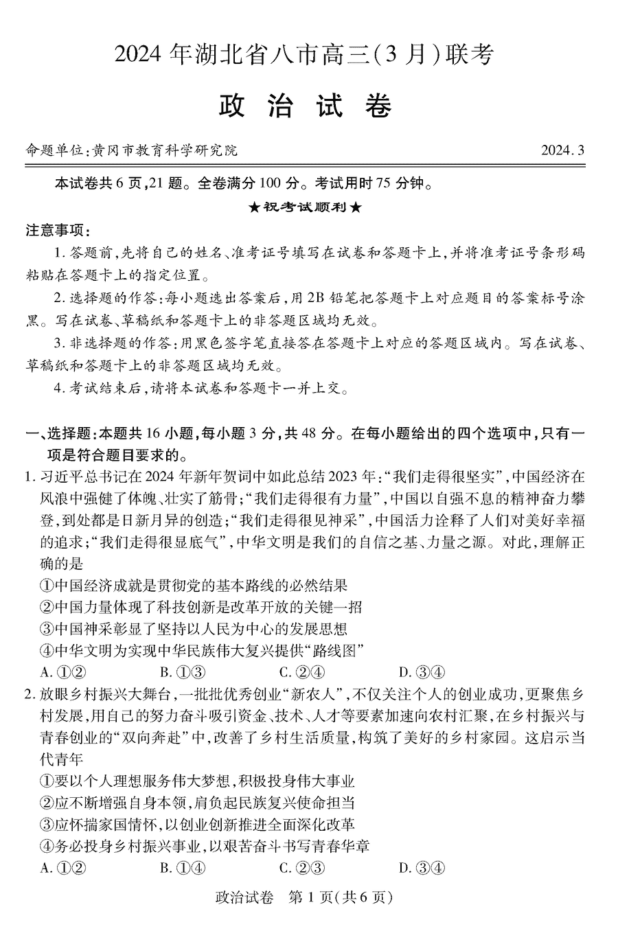 2024届湖北T8联考高三第二次学业质量评价政治考试已于近日开考,为方便考生考后及时查看考试情况,查漏补缺、弥补不足,本文整理了2024届湖北T8高三第二次联考政治试题答案解析相关信息!