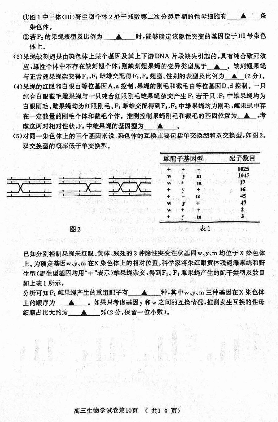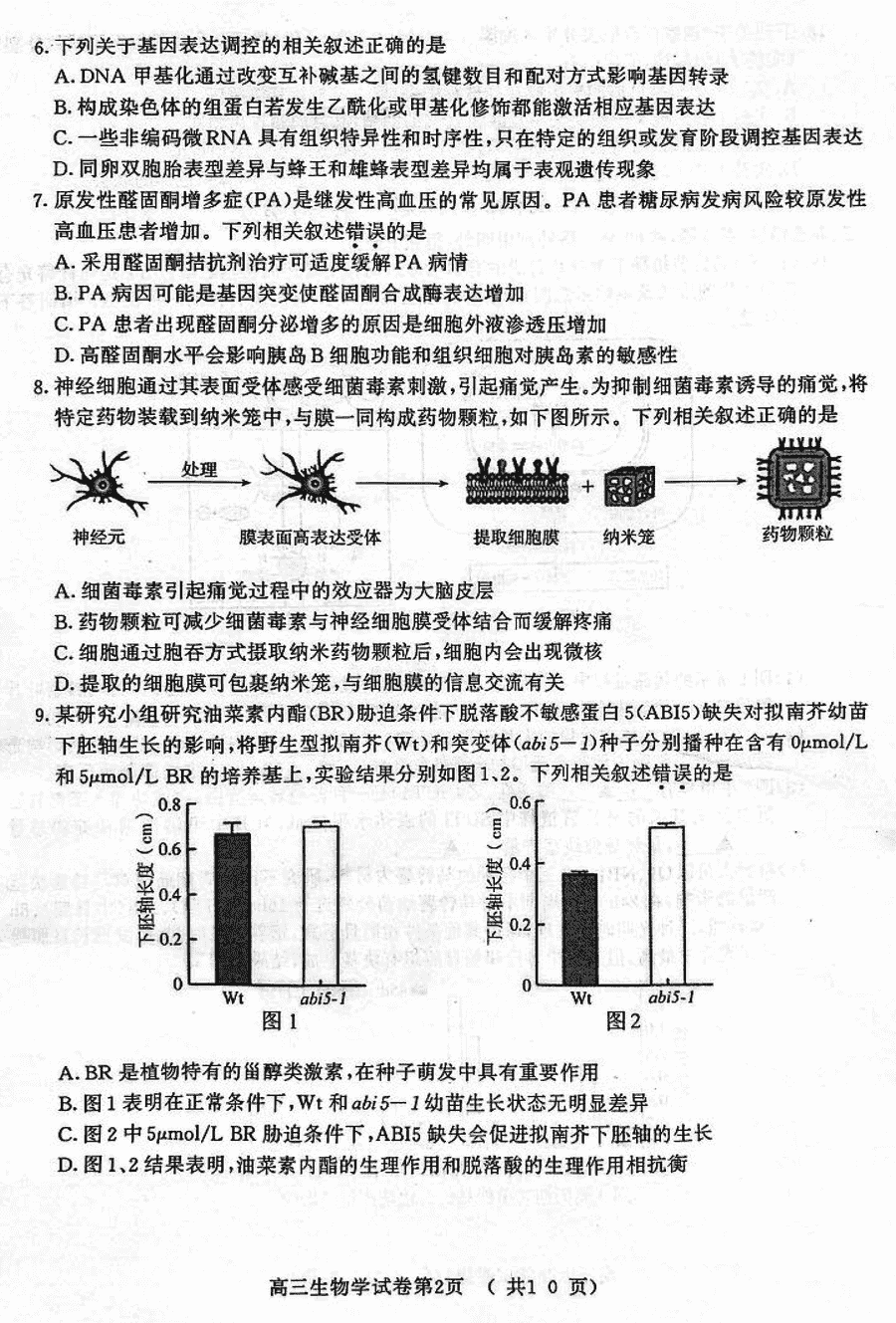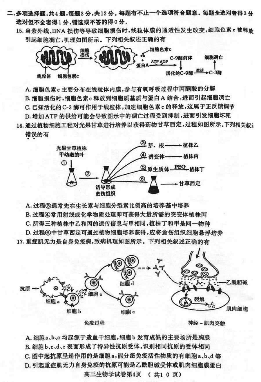 2024届南京市、盐城市高三一模生物试题及答案