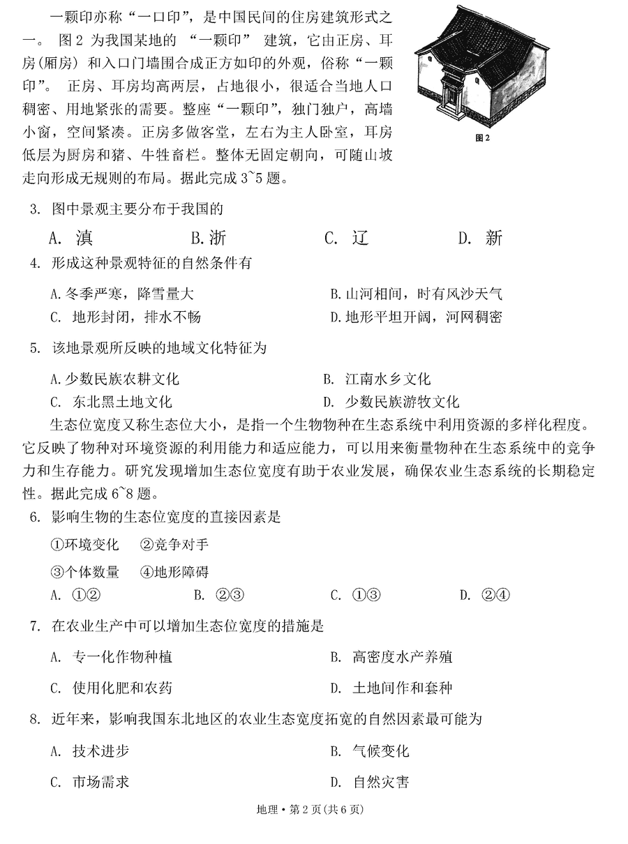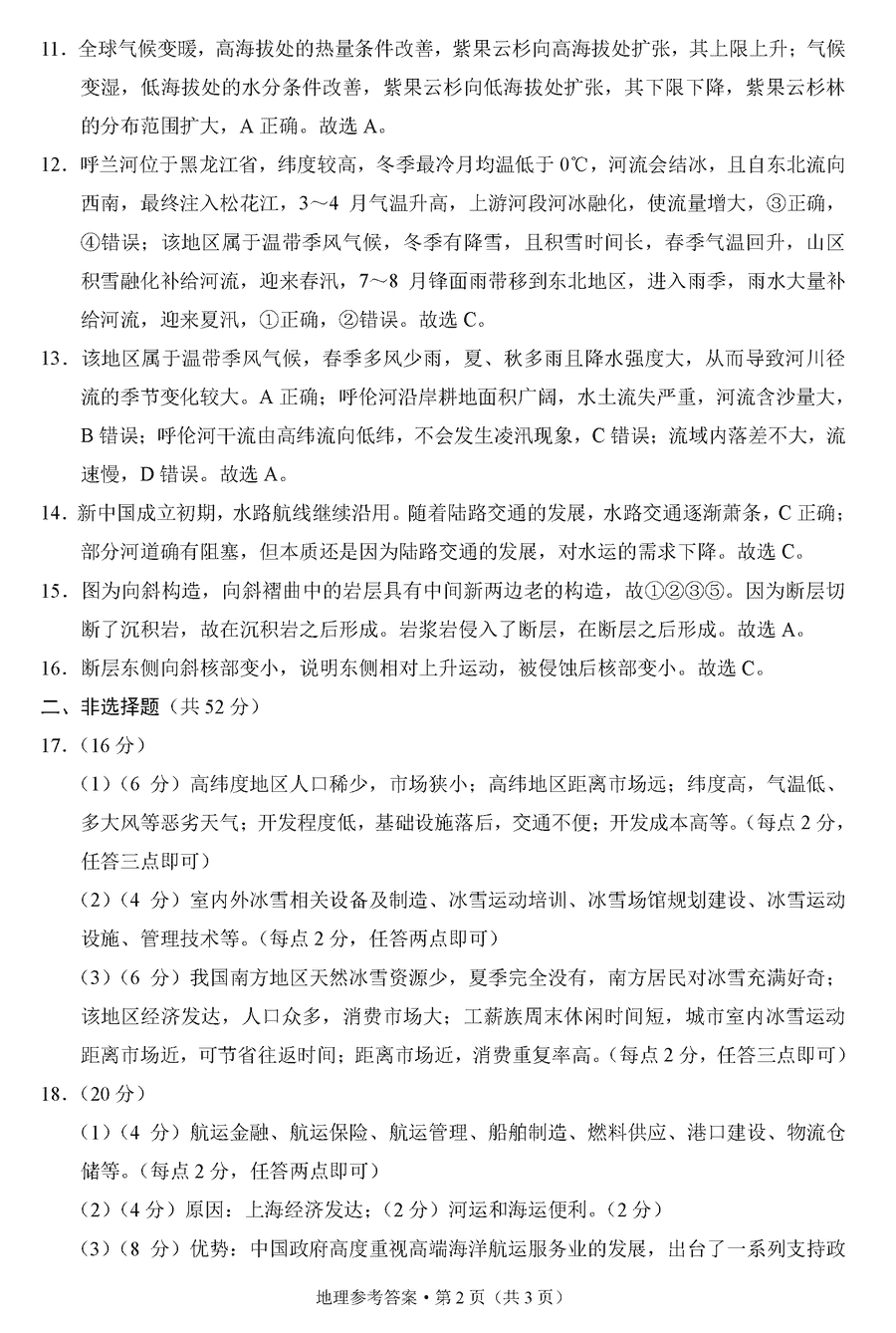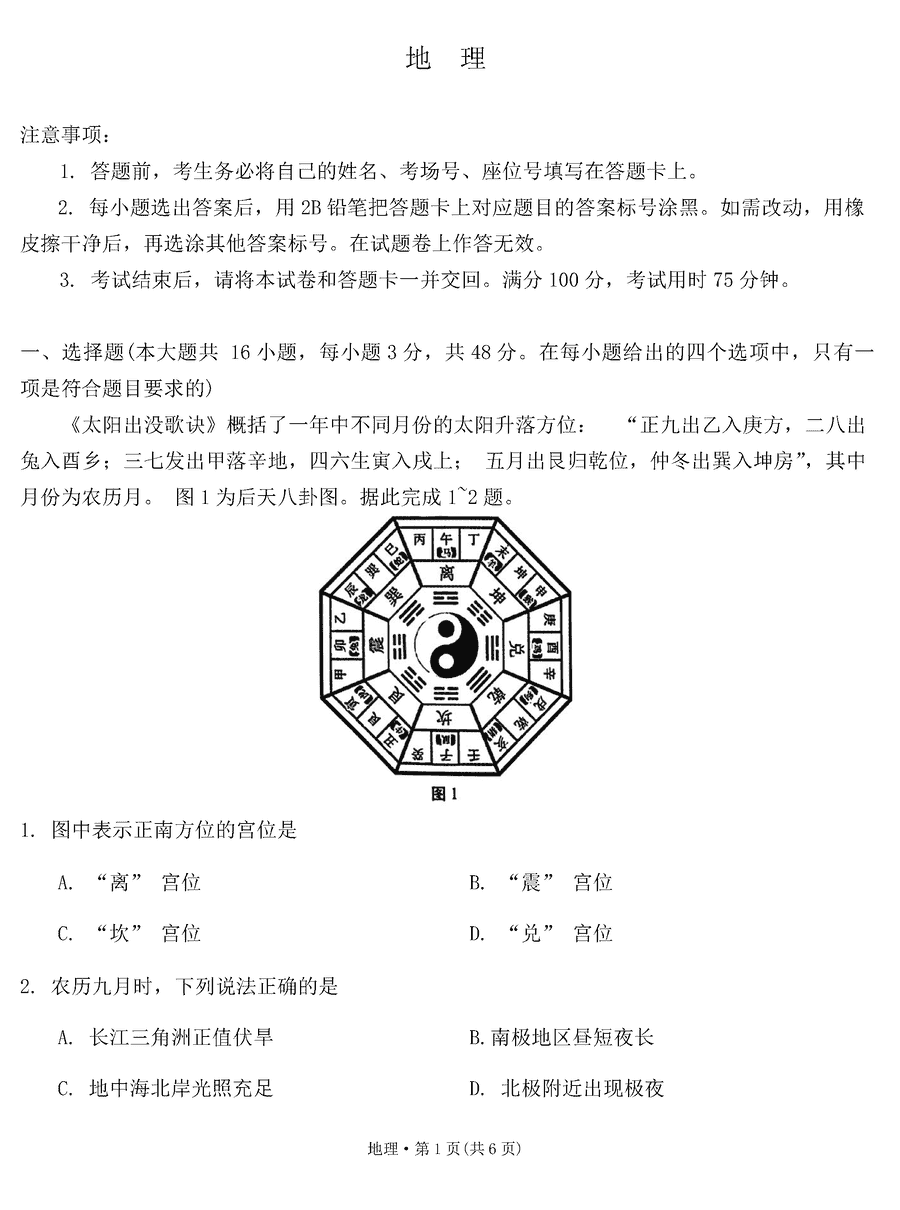 2024届云广贵3+3+3高考备考诊断性联考(二)地理试题及答案