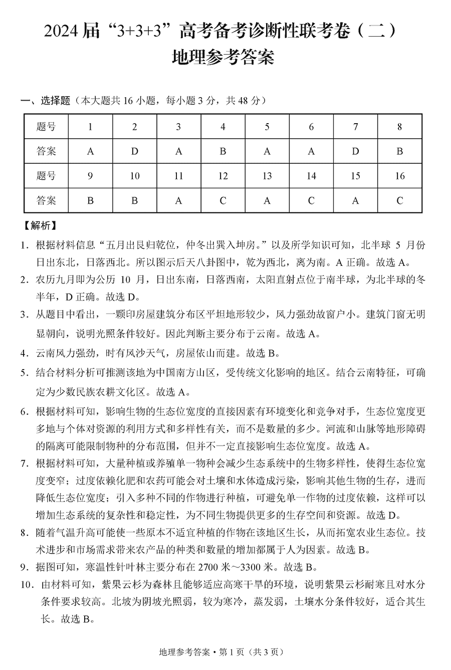 2024届云广贵3+3+3高考备考诊断性联考(二)地理考试已于近日开考,为方便考生考后及时查看考试情况,查漏补缺、弥补不足,本文整理了2024届云广贵3+3+3高考备考诊断性联考(二)地理试题答案解析相关信息!
