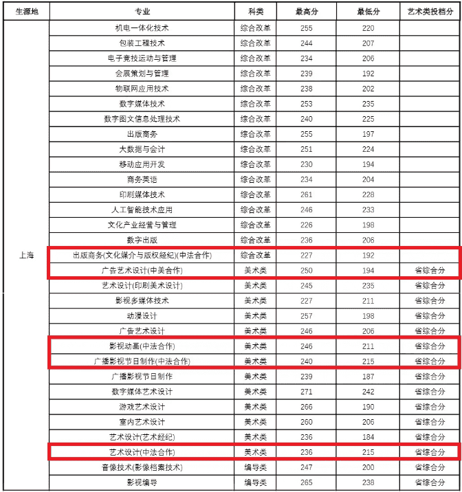 2023上海出版印刷高等专科学校中外合作办学分数线