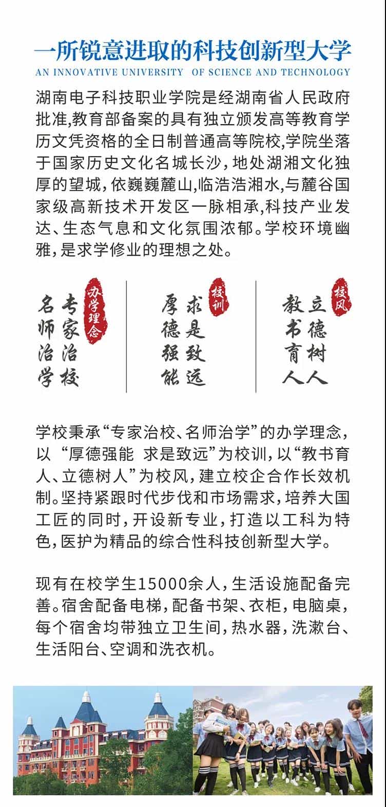 现在参加单招录取的考生与参加高考录取的考生享受同等待遇,单招对于一些同学来说也是不错的选择,2021年湖南电子科技职业学院单招招生简章已经公布,小编整理了相关信息,供大家参考!