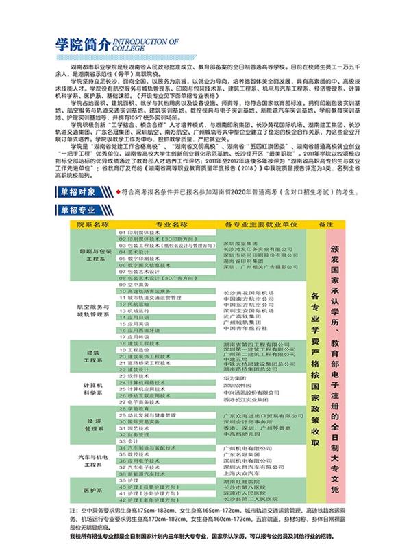 湖南都市职业学院发布了2020年单招章程,公布了招生专业等内容,湖南都市职业学院2020年招生专业有印刷媒体技术、艺术设计、空中乘务等。